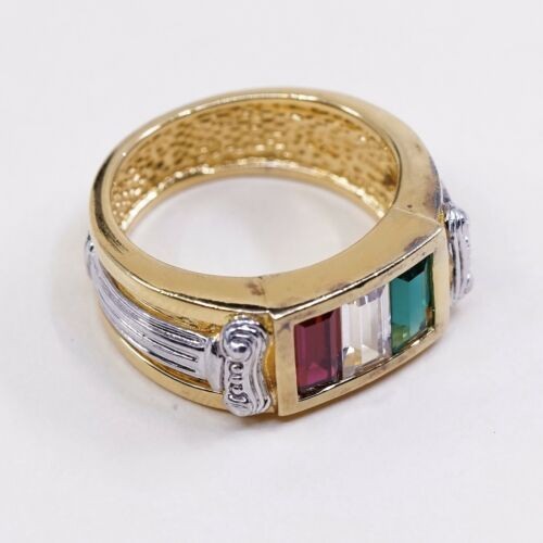 Sz 10.75, vermeil gold over Sterling Silver Ring, 925 Band W/ Lab Ruby N Peridot