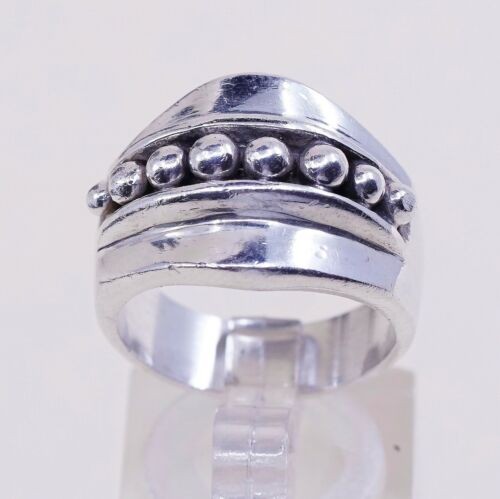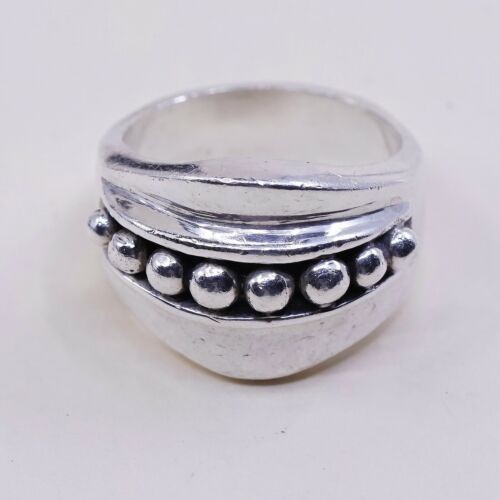 Size 7.25, Vtg Sterling Silver Handmade Ring 925 Silver Band w/ beads Around
