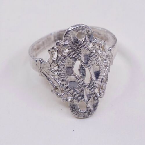 как выглядит Size 5, Vtg Sterling Silver Handmade Ring, 925 Silver Band W/ Filigree Whirl фото
