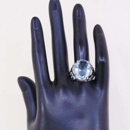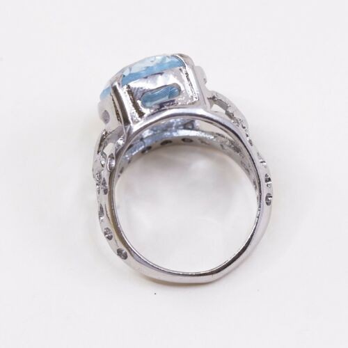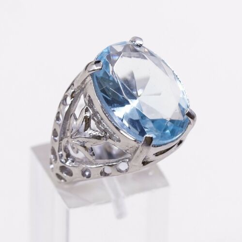 Sz 8.5,vtSterling Silver Cocktail Ring, 925 Silver Ring W/ Birthstone Blue Topaz