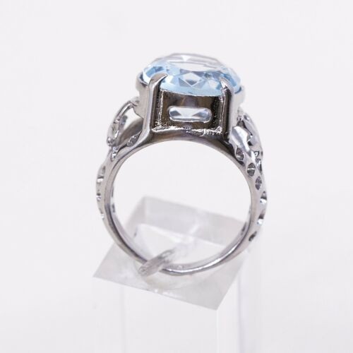 как выглядит Sz 8.5,vtSterling Silver Cocktail Ring, 925 Silver Ring W/ Birthstone Blue Topaz фото