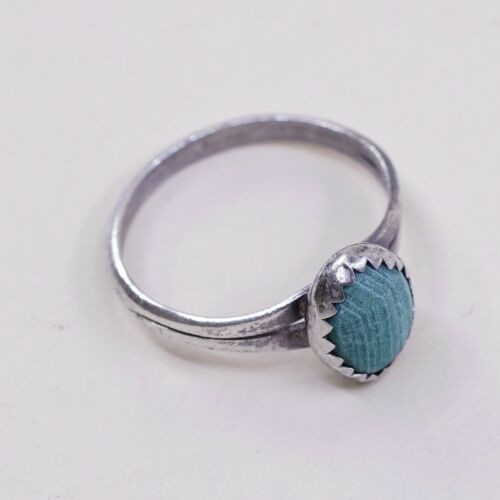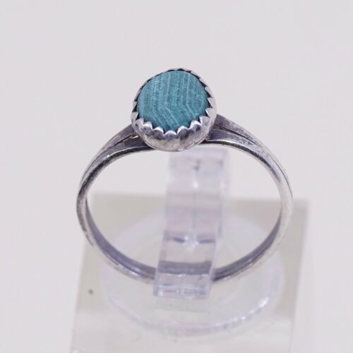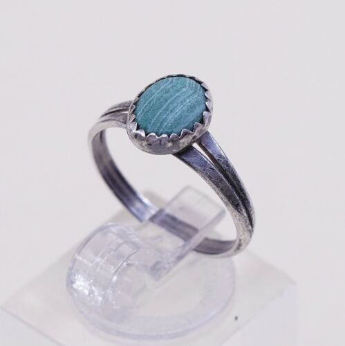 Sz 4.75, Vtg Sterling Silver Handmade Ring, 925 Silver Band W Malachite Inlay