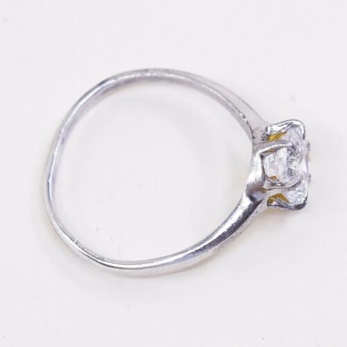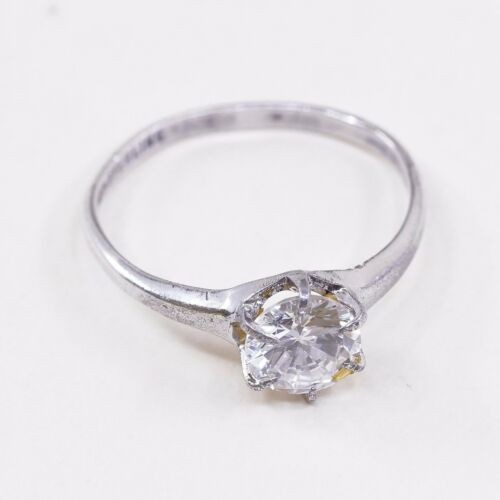 как выглядит Sz 8.75, Vtg WJ Sterling Silver Handmade Ring, 925 Silver Engagement Ring W/ Cz фото