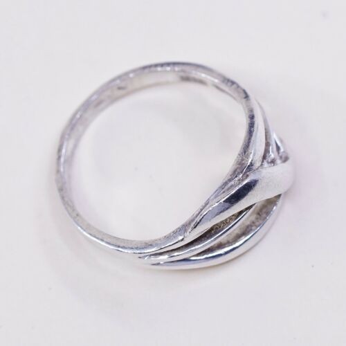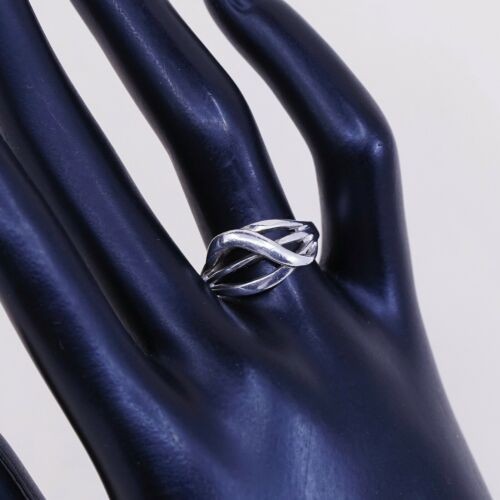 Sz 7.25, Vtg Sterling Silver Handmade Ring 925 Band Entwined Wavy, Stamped 925