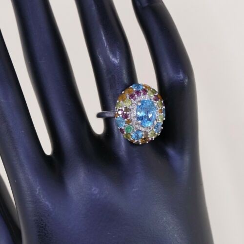 как выглядит Sz 7.5, Vtg Sterling silver Engagement ring, 925 W/ Colorful Cluster Crystal фото