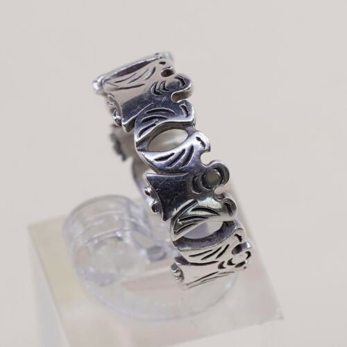Size 9.25, Vtg Sterling Silver Handmade Hammered Statement Ring 925 Angel Band