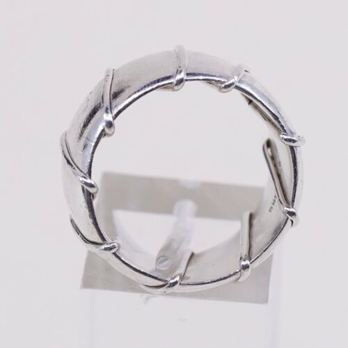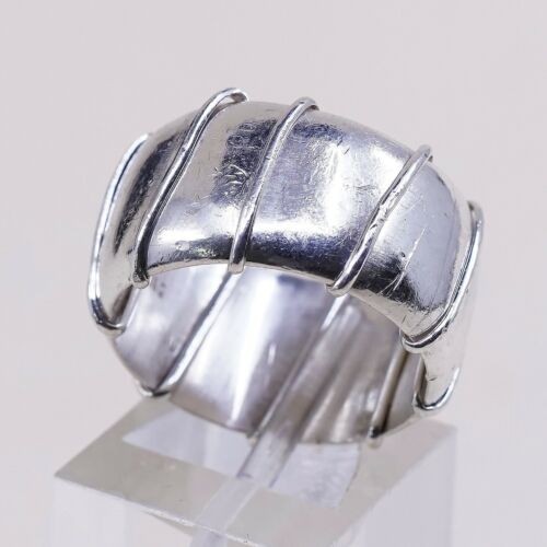 Size 7.25, Vtg Sterling Silver Handmade Ring 925 Wide Band w/ Cable Around