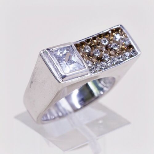 как выглядит Sz 7, Vtg Sterling Silver Handmade Ring, 925 Silver Statement Band W/ Cluster Cz фото