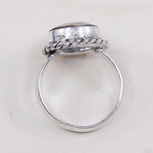 Sz 8.5, Sterling Silver Ring, 925 Silver Engagement Ring W/ Smoky Crystal