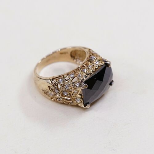 Sz 7, Vtg Vermeil Gold Over Sterling silver Statement ring, 925 W/ Topaz N Cz