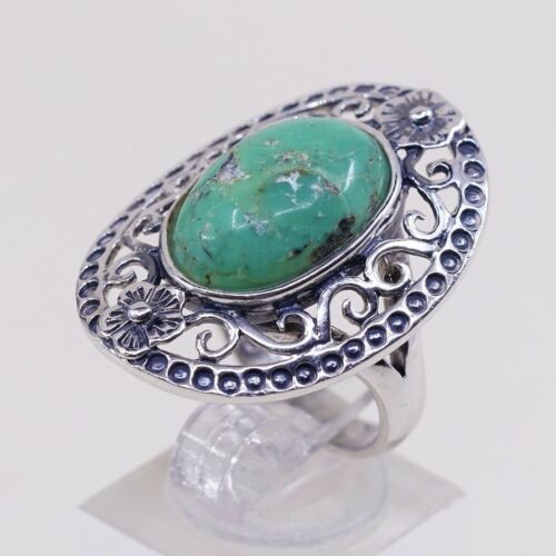 Sz 7, Vtg Thailand Handmade Sterling 925 Filigree W/ Turquoise Statement Ring