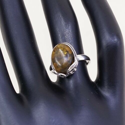 как выглядит Sz 7, Vtg Orange Amber Sterling 925 Silver Handmade Ring, Stamped 925 фото