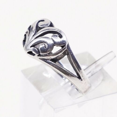 как выглядит Size 6, Vtg Sterling Silver Handmade Ring, 925 Silver Band W/ Filigree Heart фото