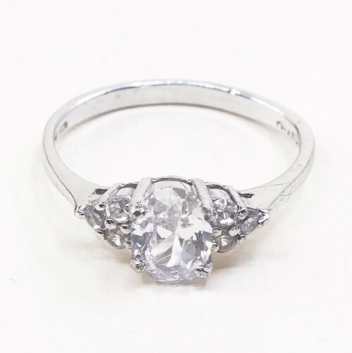 Sz 7, Vtg Sterling silver Engagement ring, 925 silver band W/ CZ