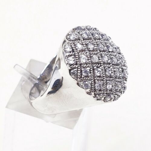 Sz 8.5, Vtg Sterling silver Engagement ring, 925 silver band W/ Cluster Cz