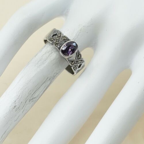 Sz 8, Sterling Silver handmade Ring, 925 Silver W/ amethyst n marcasite