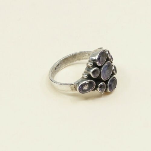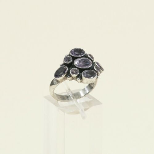 Sz 7.5, Sterling Silver handmade Ring, 925 Silver Ring W/ amethyst, stamped 925