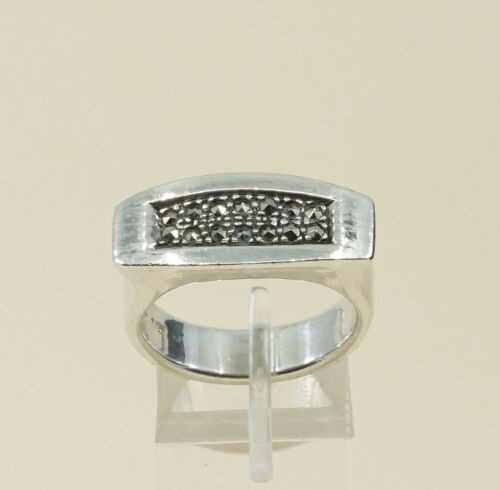 Sz 9, Vtg Sterling Silver Handmade Ring, 925 Silver Band marcasite inlay