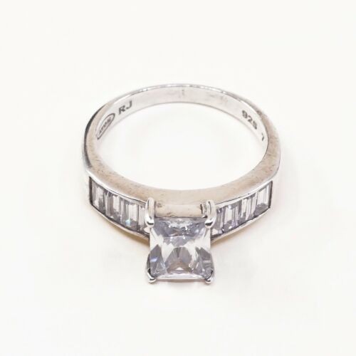 Sz 7.5, Vtg Sterling Silver Ring, 925 Silver Engagement Ring W/ Crystal