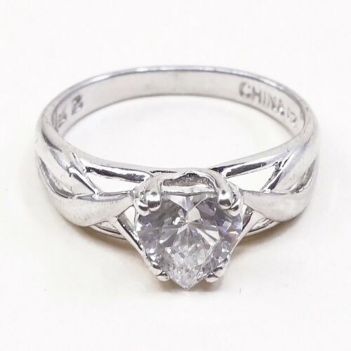 Sz 6, Vtg Sterling Silver handmade Ring, 925 Ring W/ Heart Shaped Cz