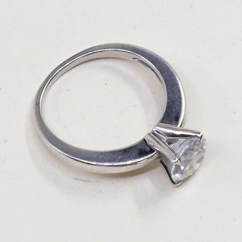 Sz 6.25, Vtg Sterling silver handmade ring, solid 925 Engagement band W/ CZ