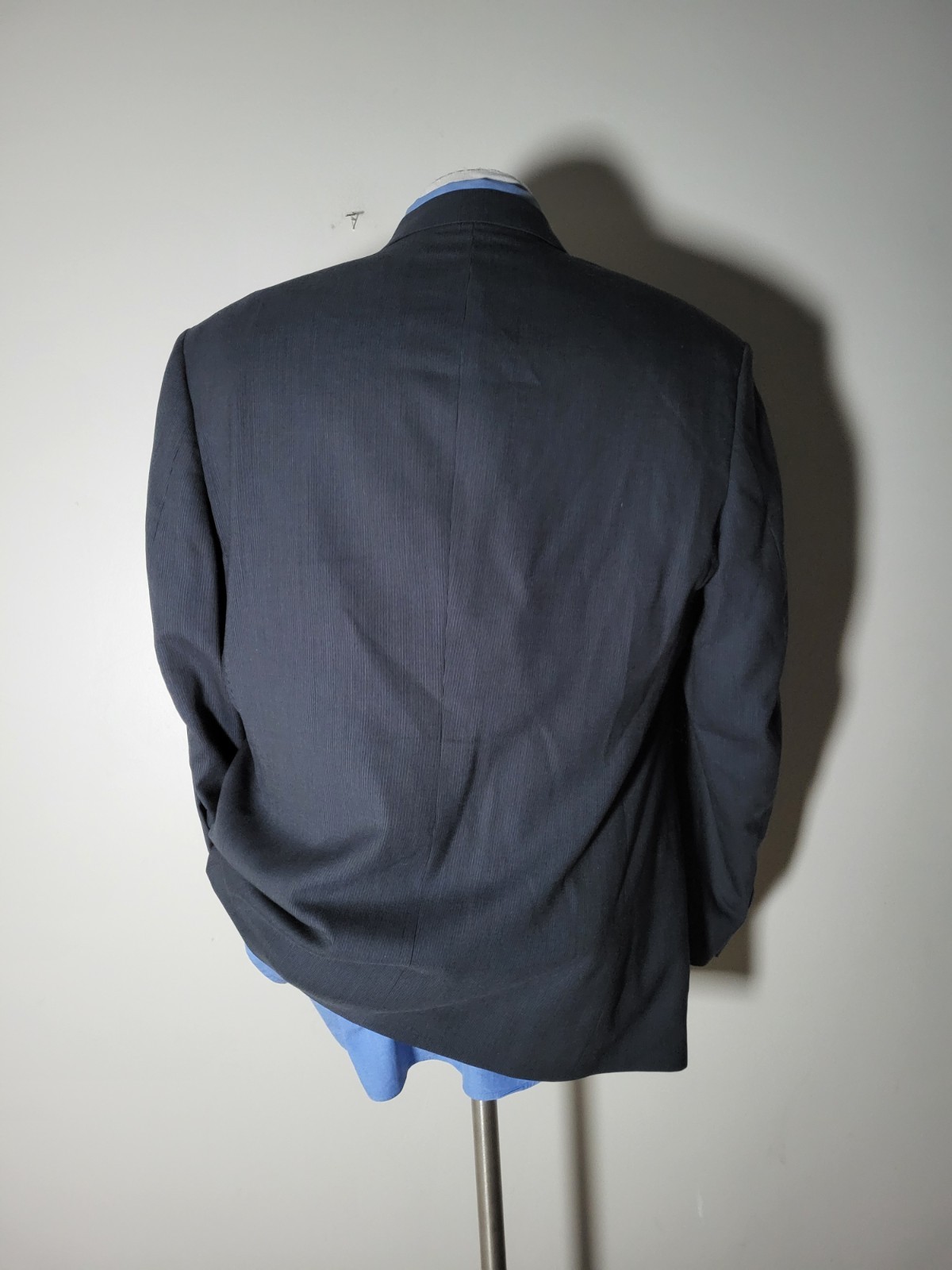 как выглядит Vtg Pierre Cardin Navy Pencil Stripe Double Breast 2pc Suit Jacket 43R Pants 36 фото