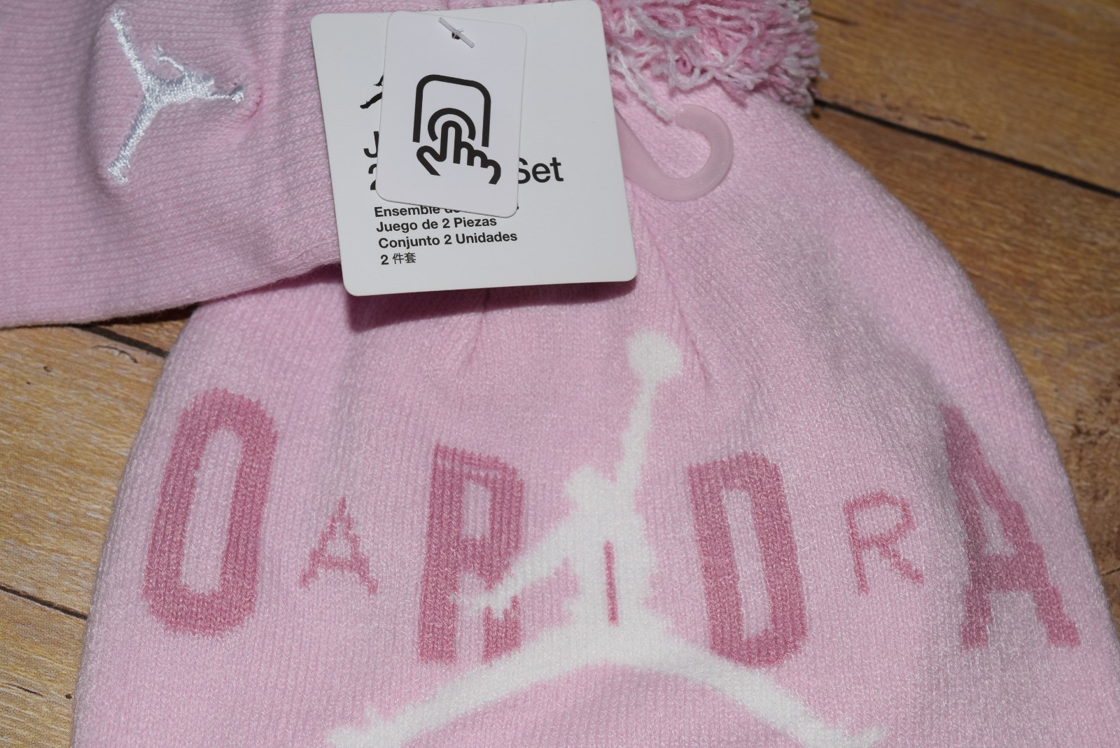 NWT Nike Kids Youth Jordan 2-Piece Knit Hat Glove Set Pink Foam White 8/20