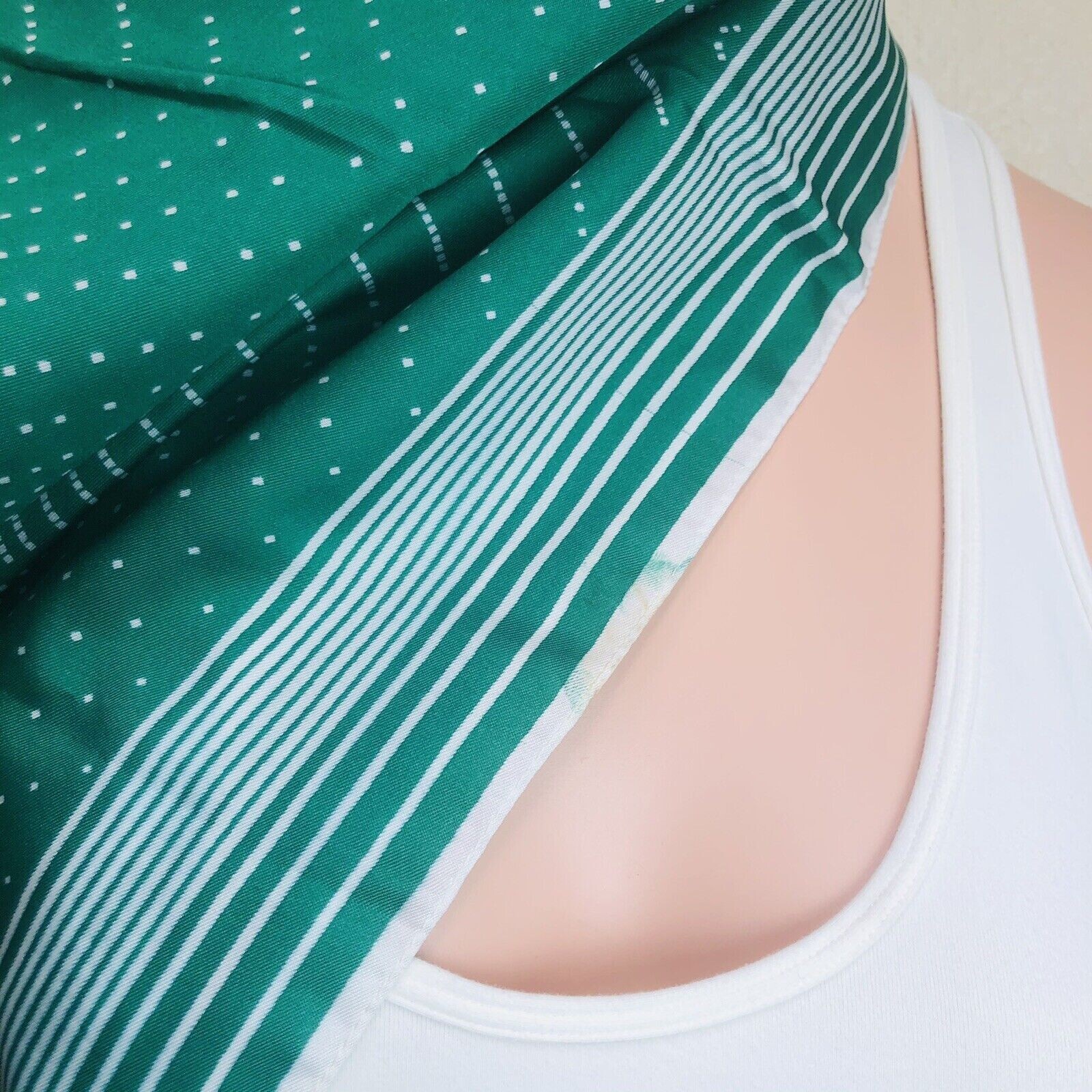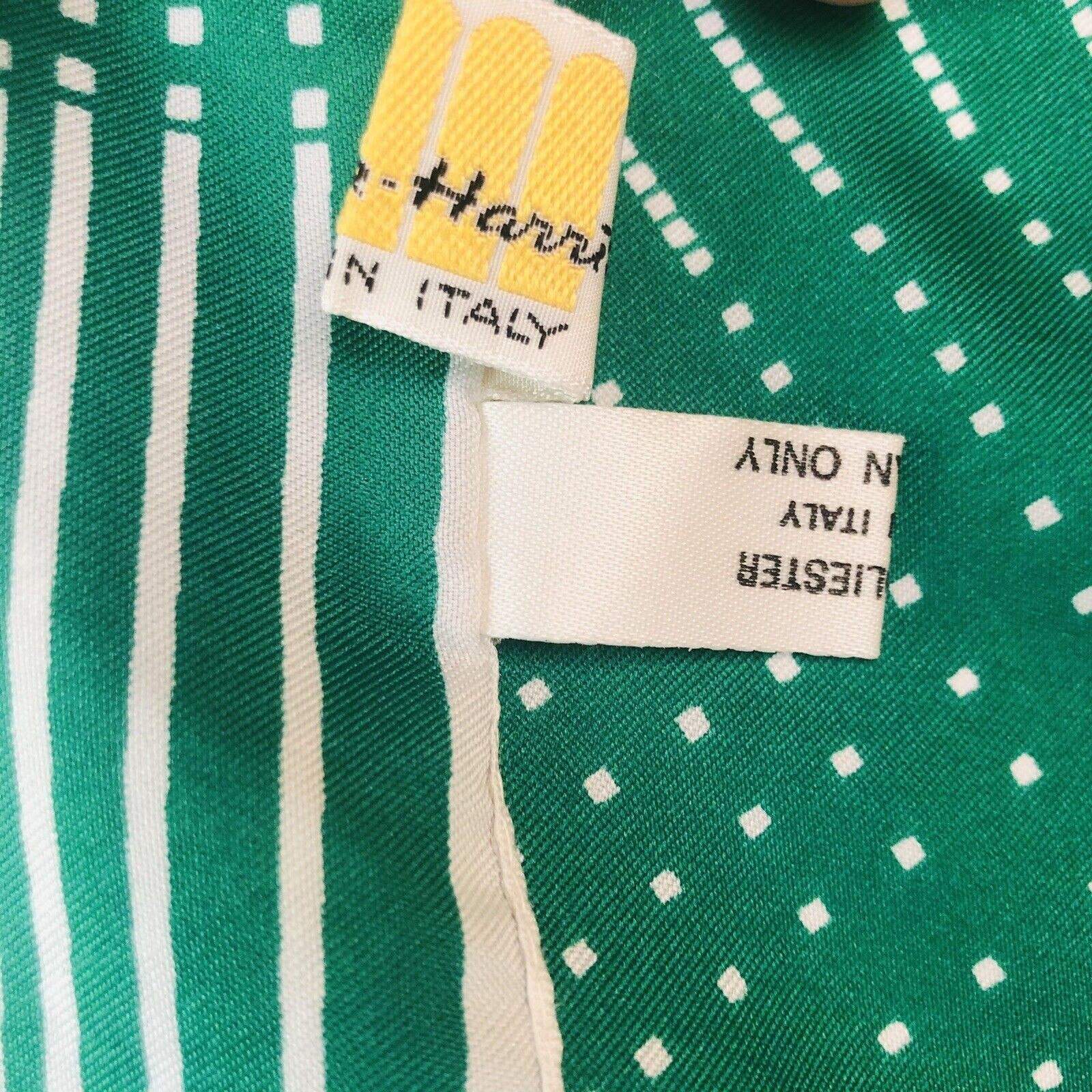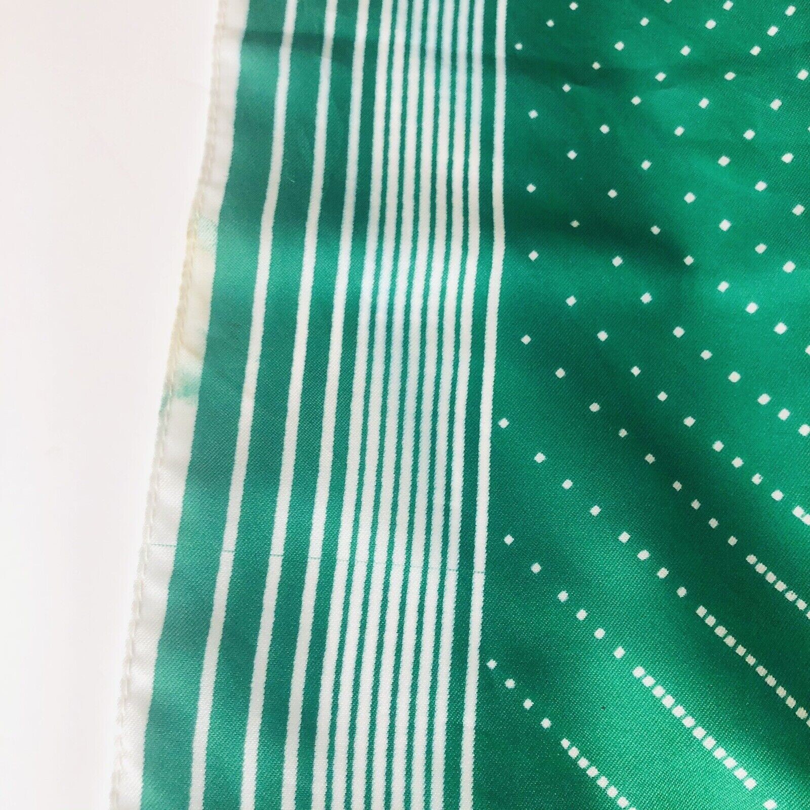 как выглядит Vintage Sanger Harris Italian Scarf 27-inch Square Green Beige Stipe Dots Design фото