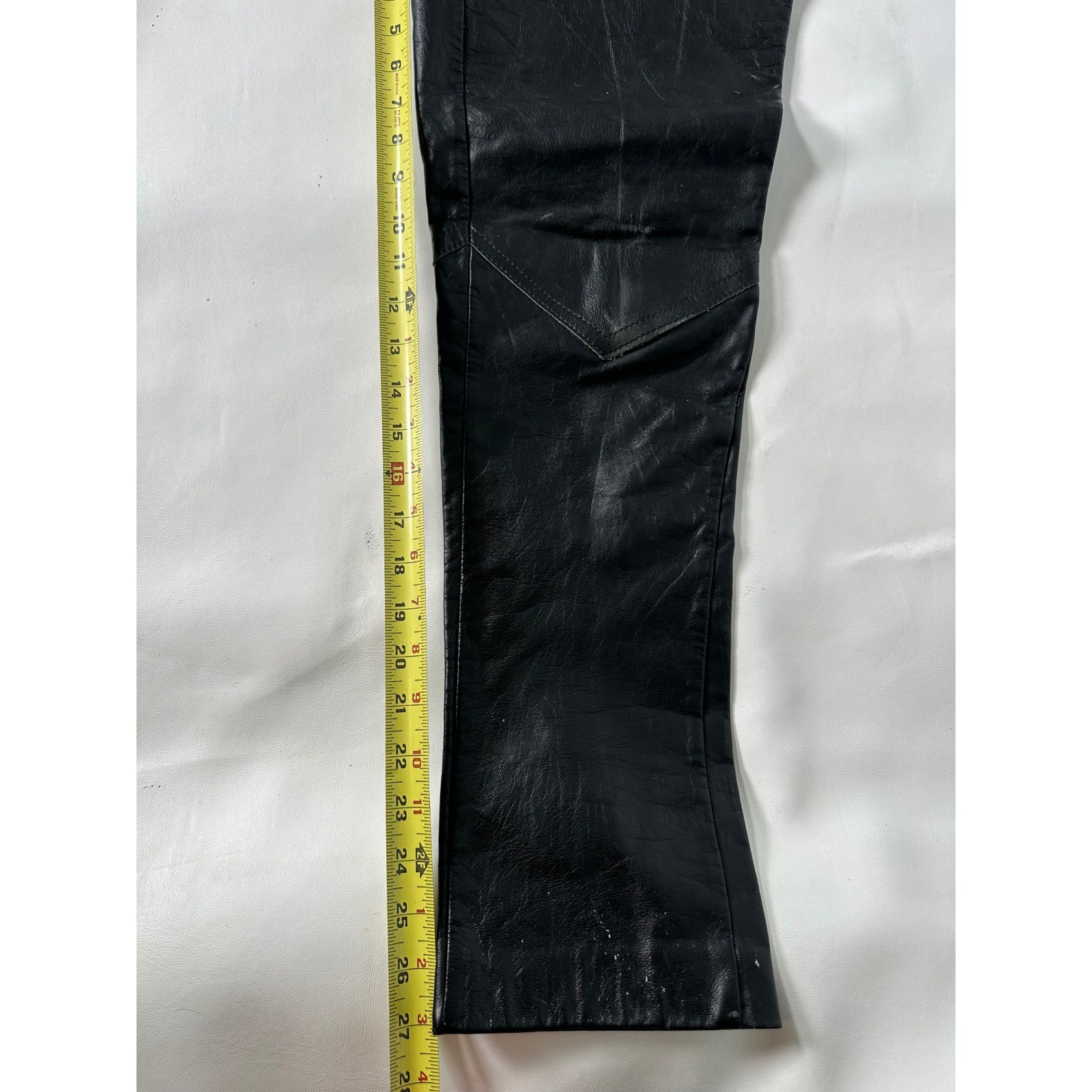 как выглядит Womens Black Vintage Leather High Waisted Zipper Fly Pants Size 26 фото