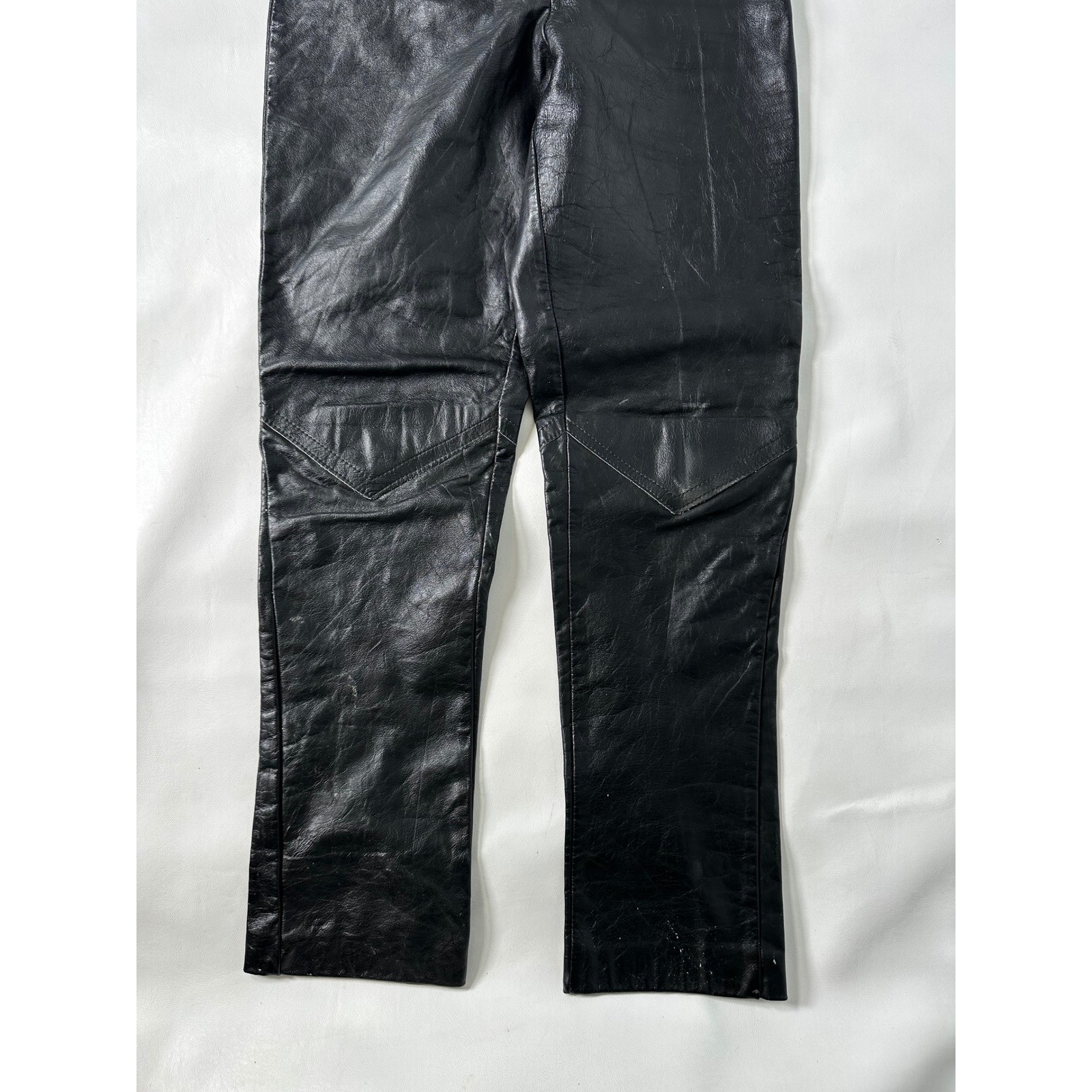 Womens Black Vintage Leather High Waisted Zipper Fly Pants Size 26