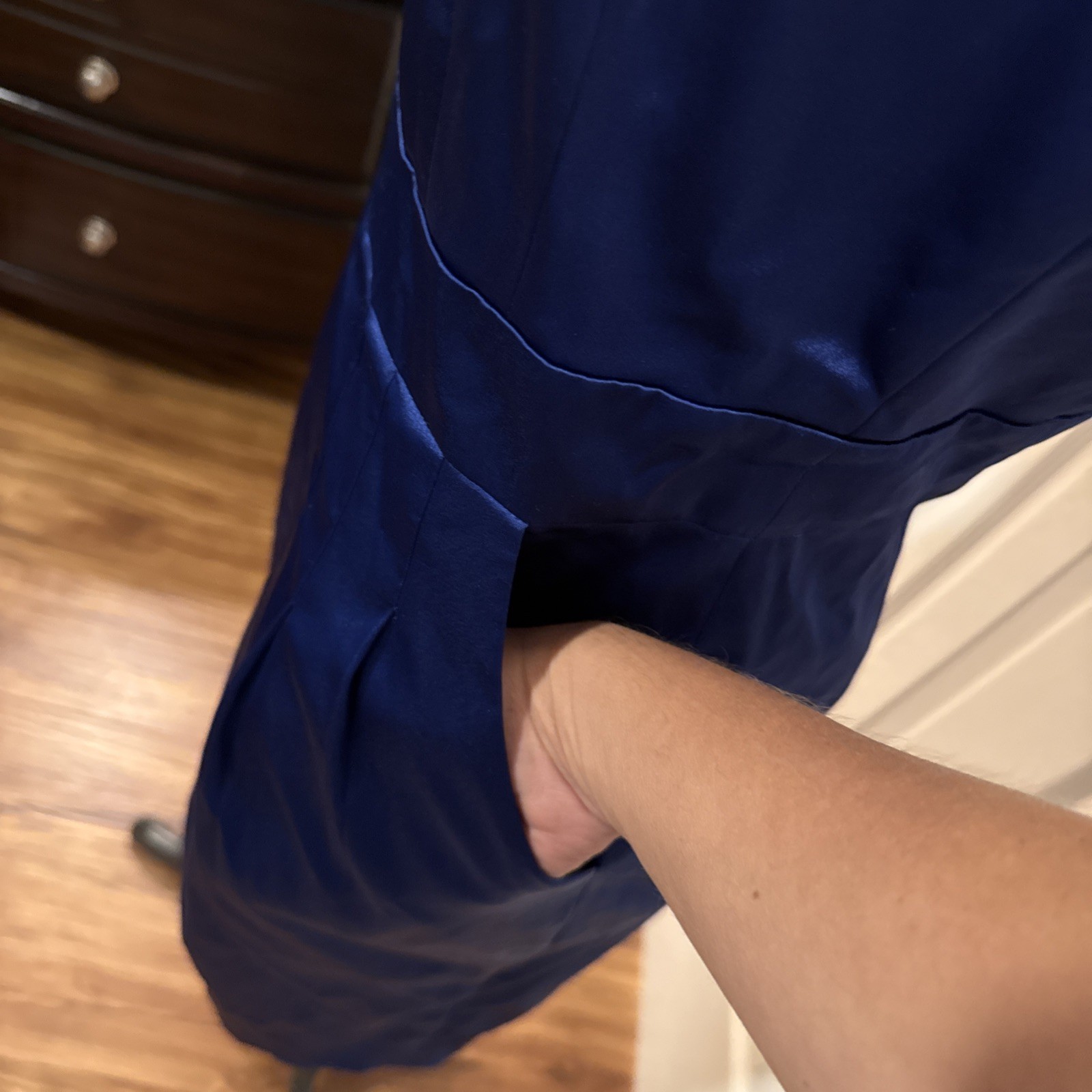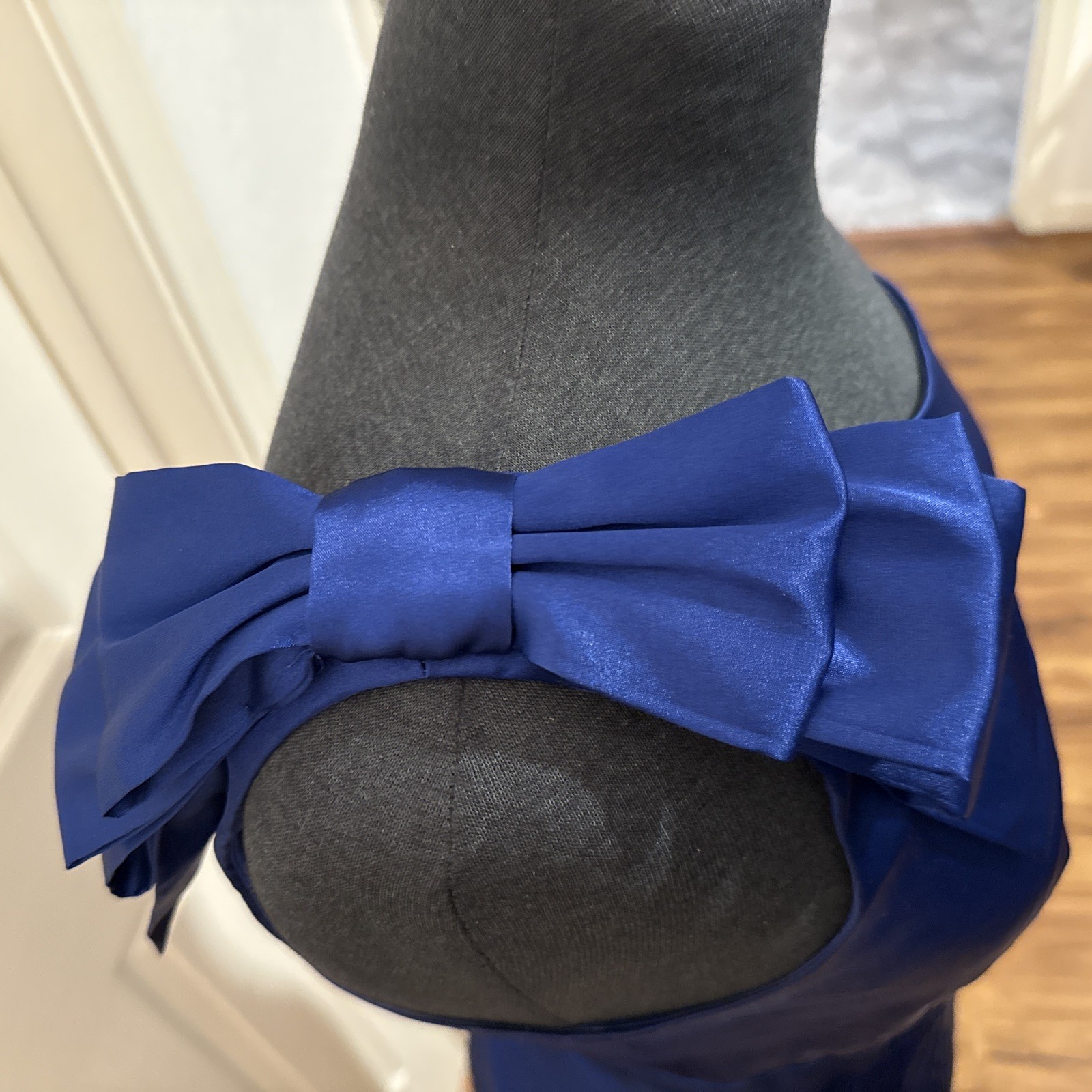 как выглядит Adrianna Papell Evening Blue Satin One Shoulder Dress With Large Bow Detail Sz10 фото