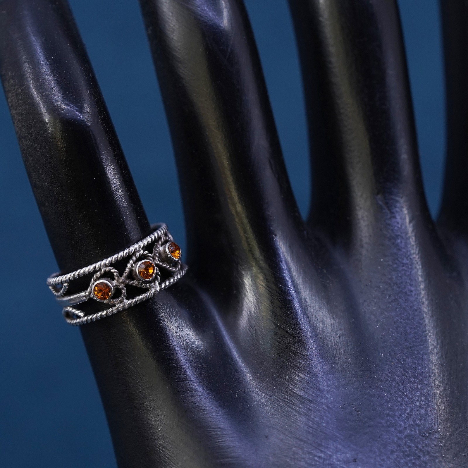 как выглядит Size 4.25, vintage Sterling silver handmade ring, 925 band with orange crystal фото