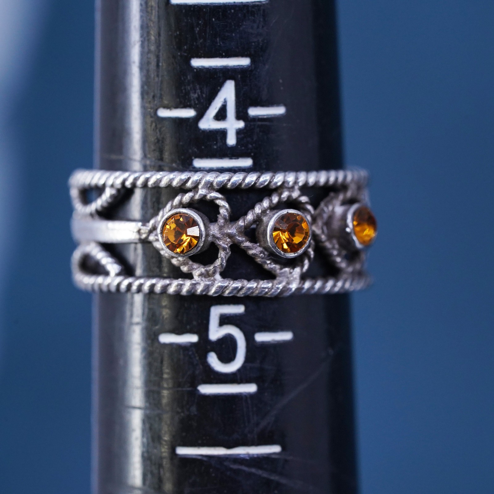 Size 4.25, vintage Sterling silver handmade ring, 925 band with orange crystal