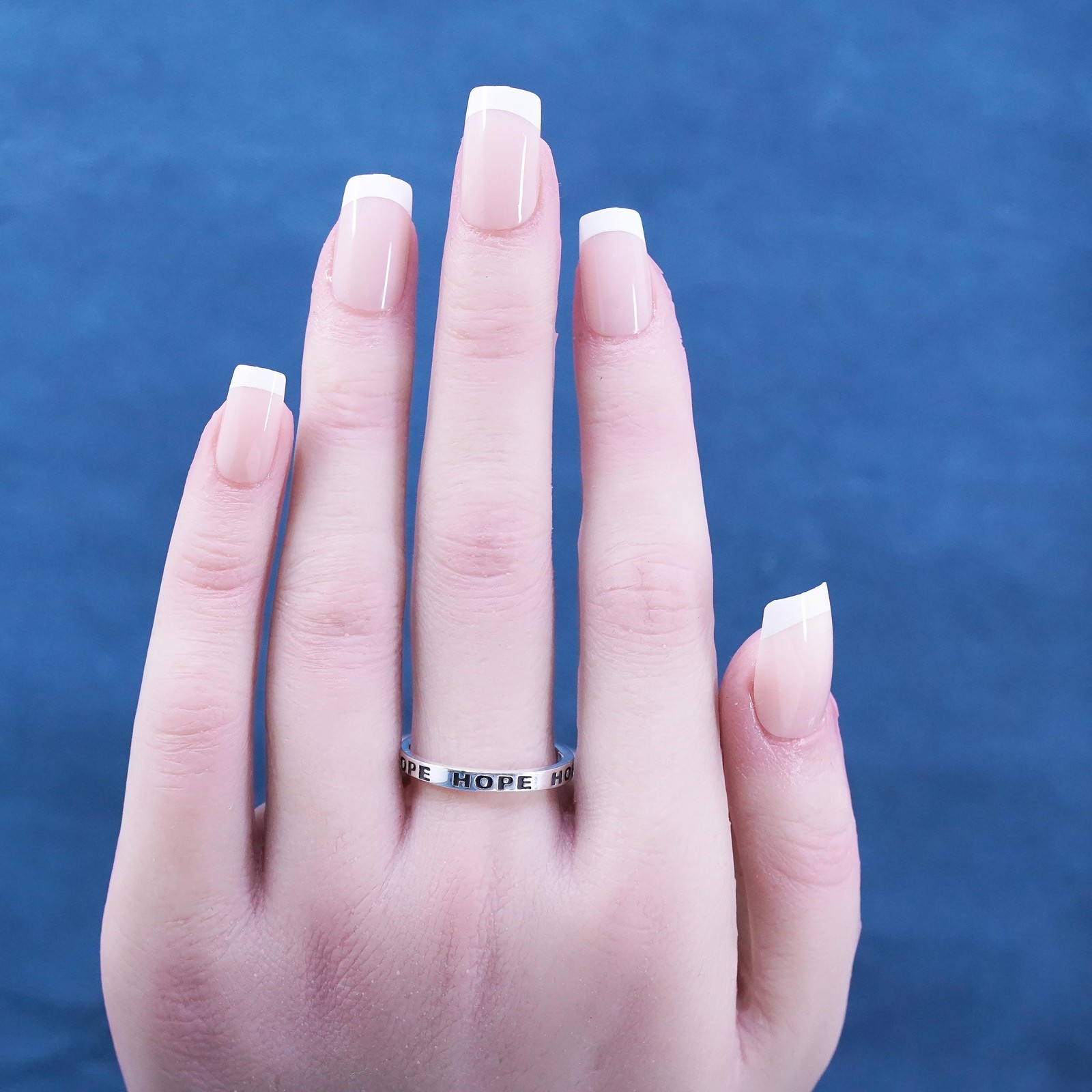 Size 9.25, vintage Sterling silver handmade ring, 925 stackable band Hope