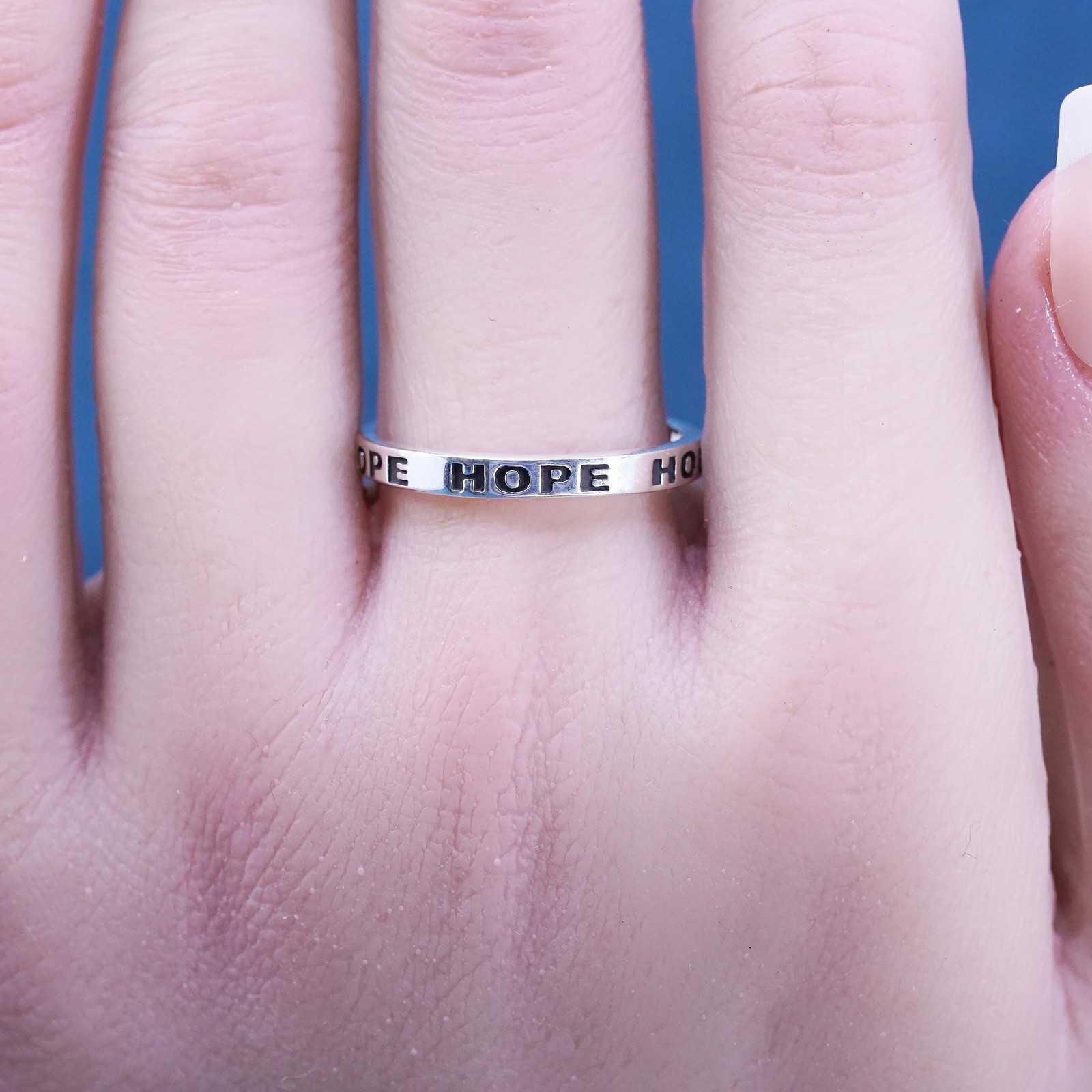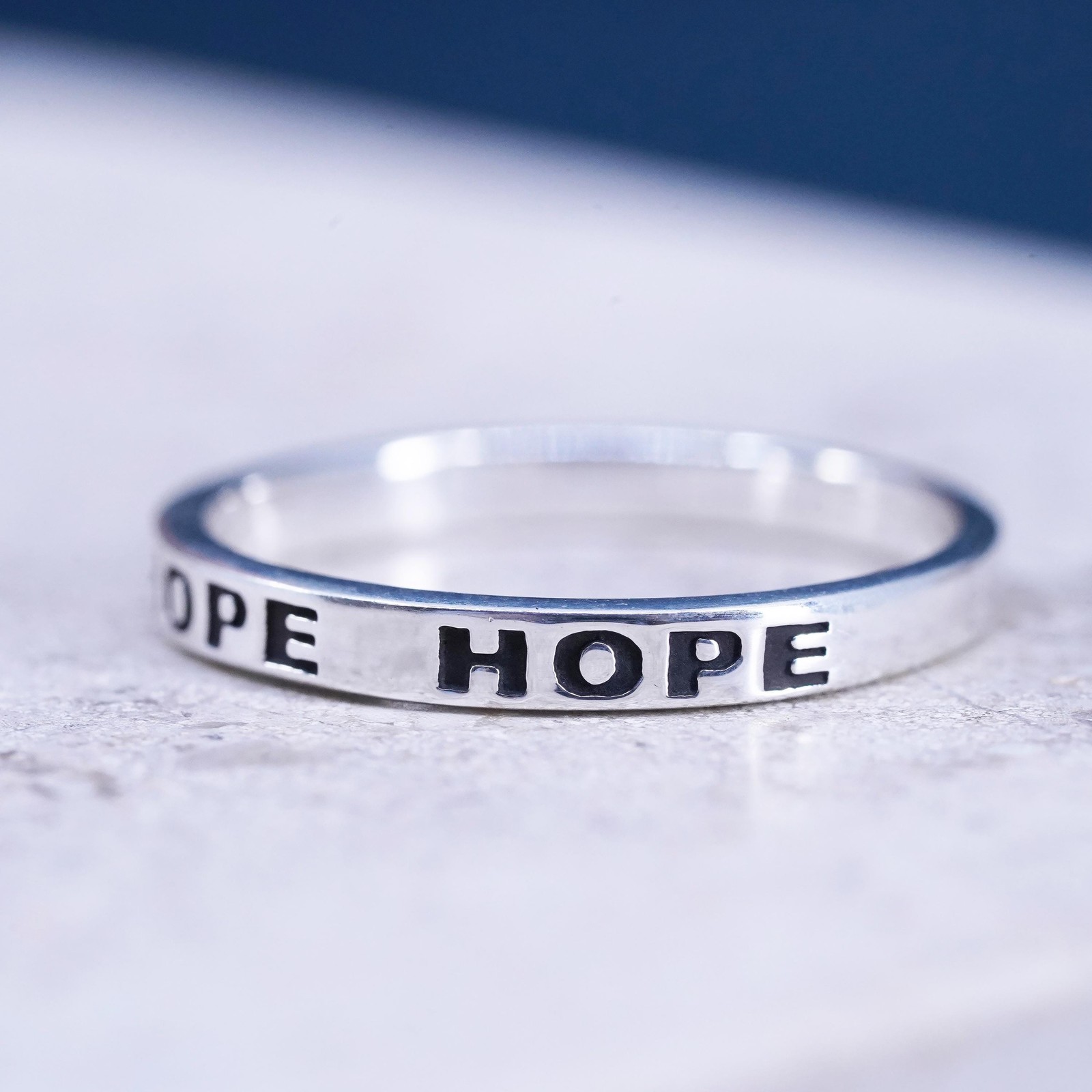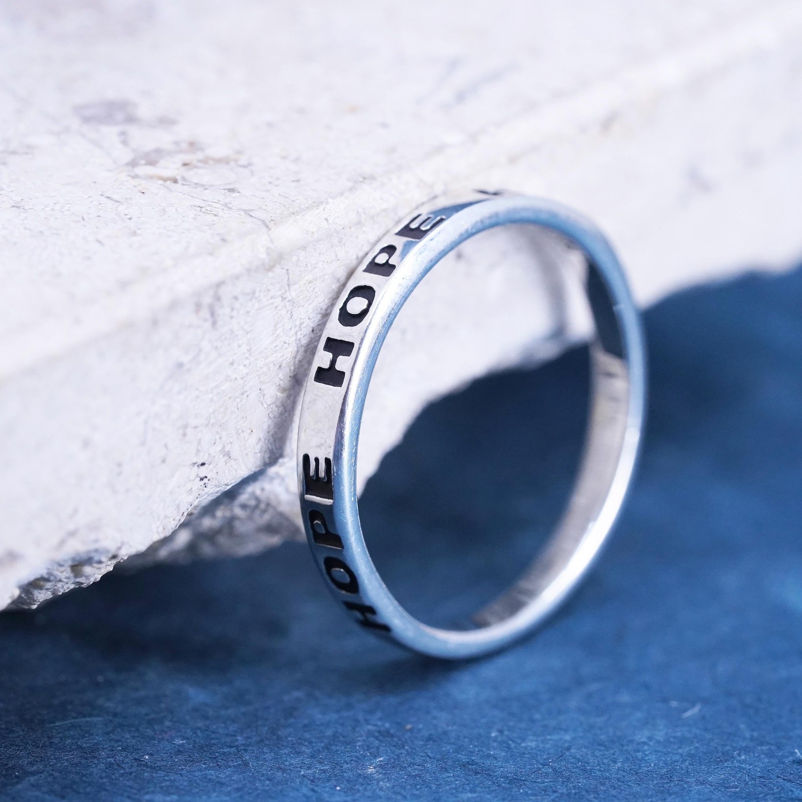 как выглядит Size 9.25, vintage Sterling silver handmade ring, 925 stackable band Hope фото