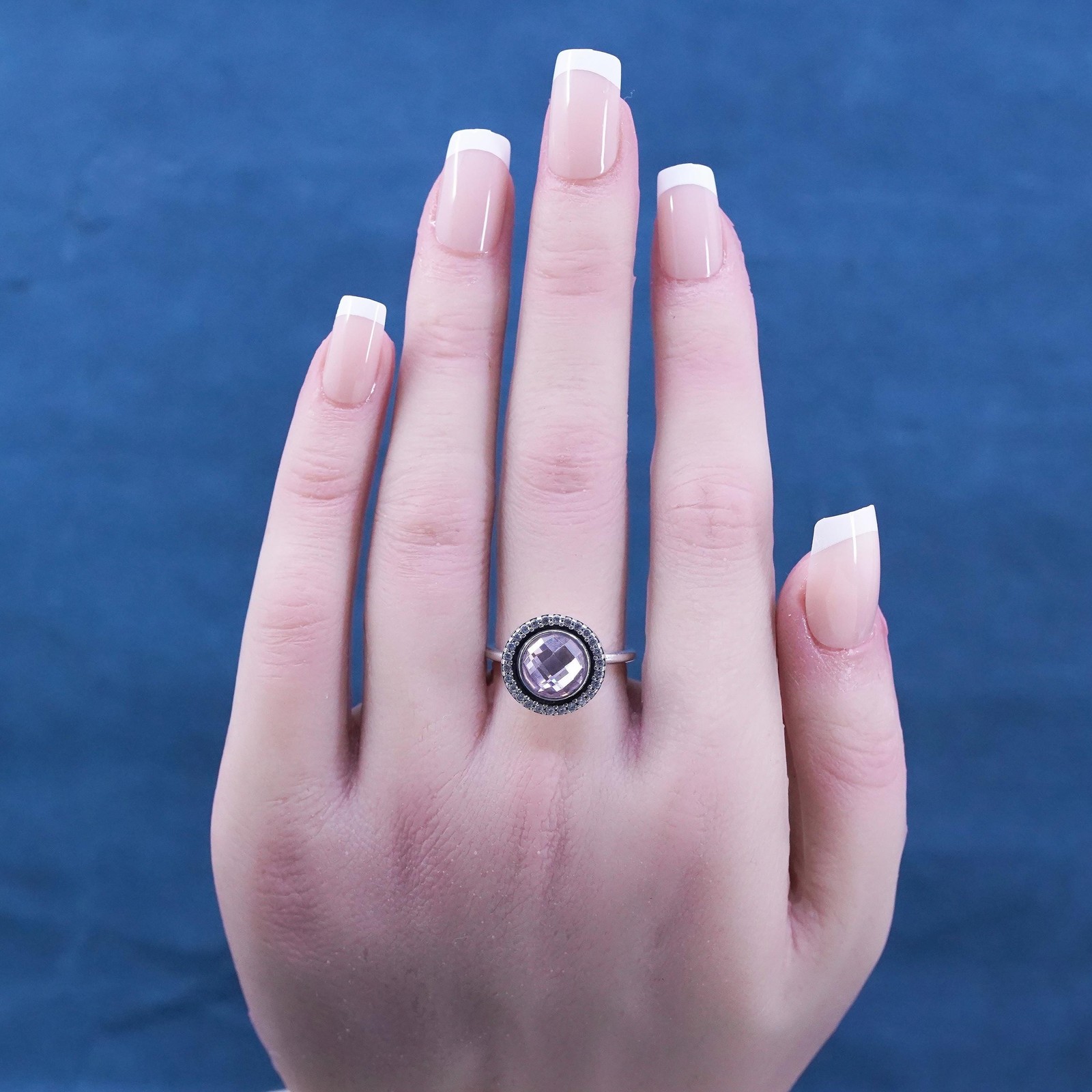 как выглядит Size 6.25, vintage ALE sterling 925 silver engagement ring with rose pink cz фото