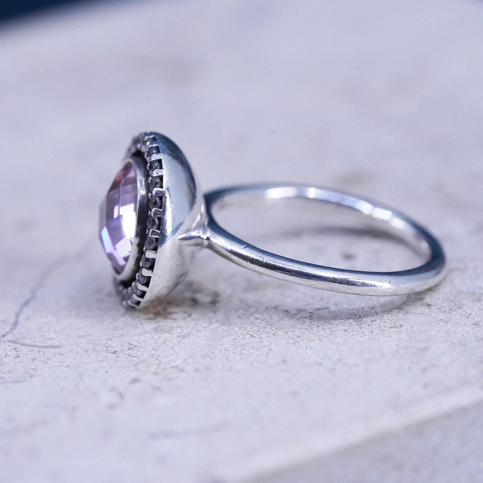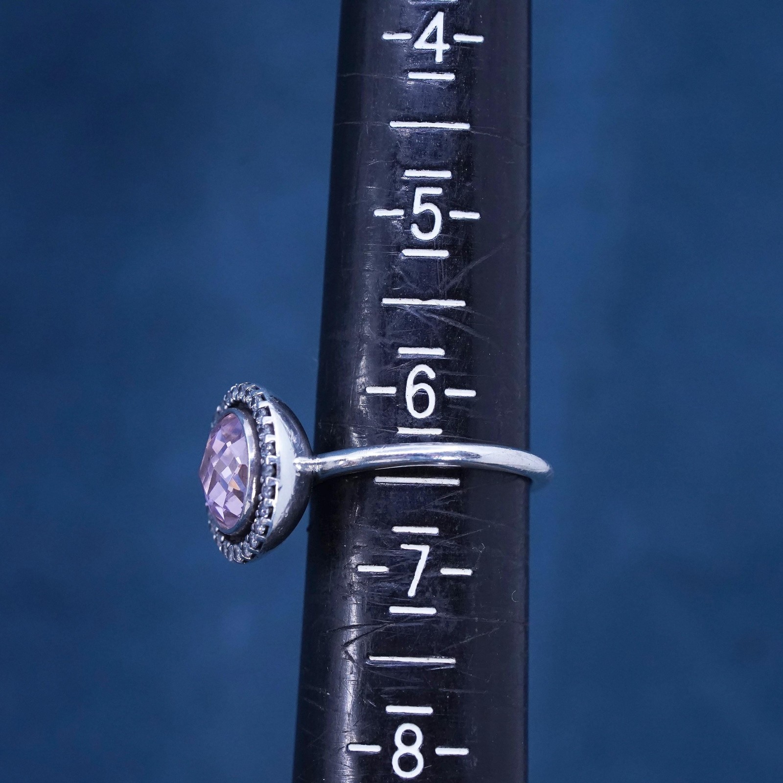 Size 6.25, vintage ALE sterling 925 silver engagement ring with rose pink cz