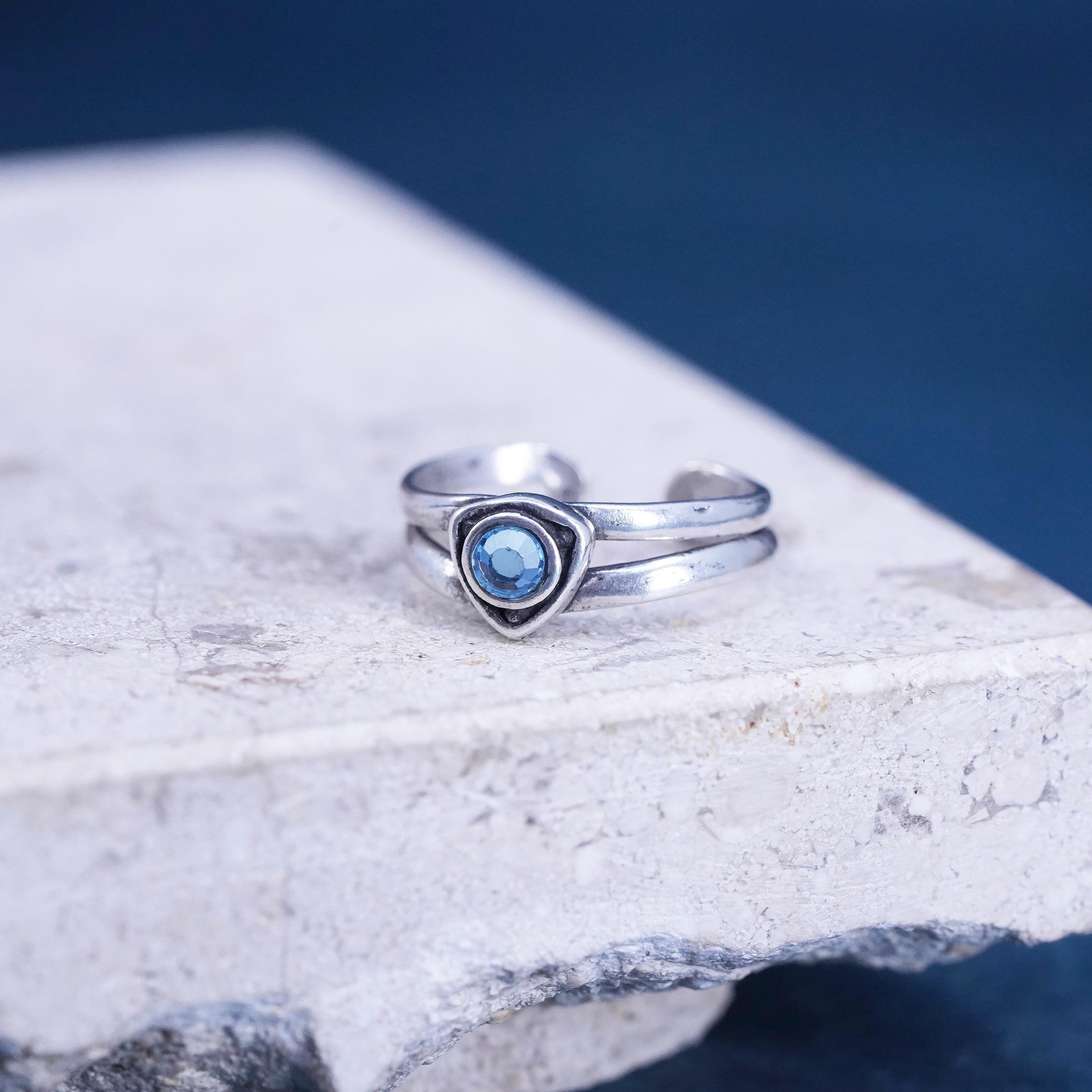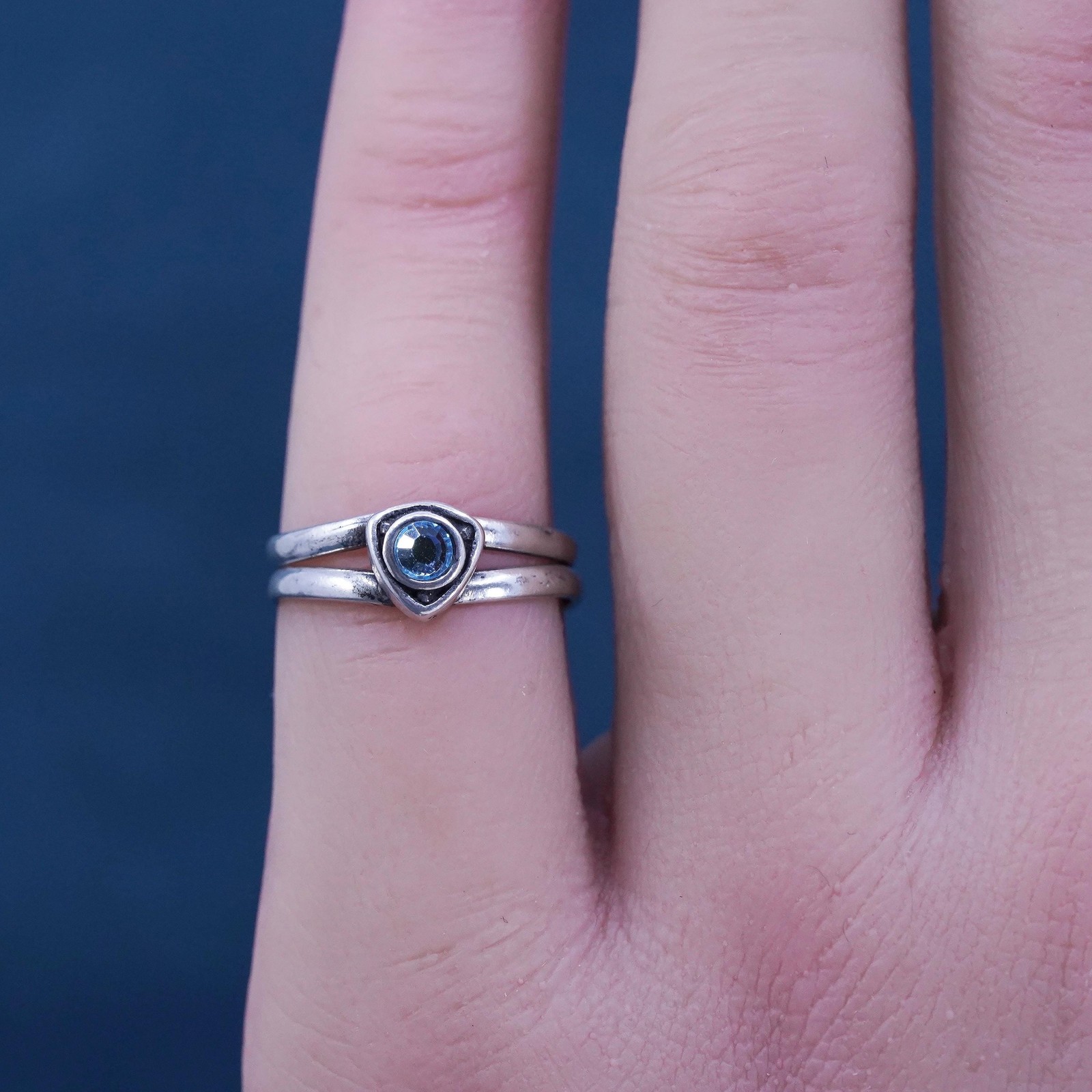 как выглядит Size 2.25, vintage Sterling silver handmade ring, 925 band with boue crystal фото
