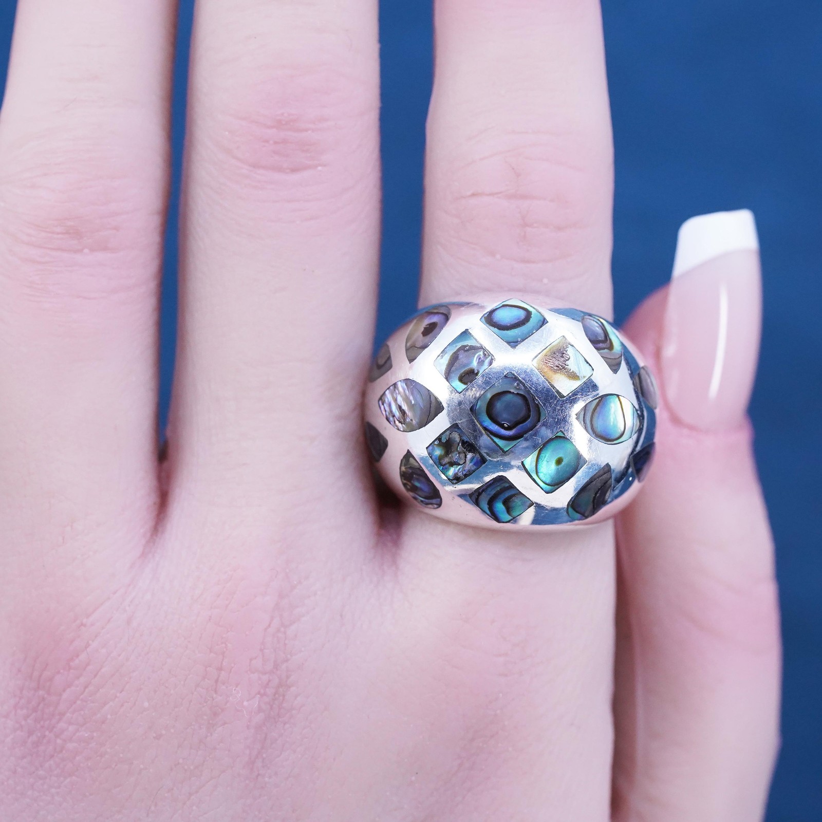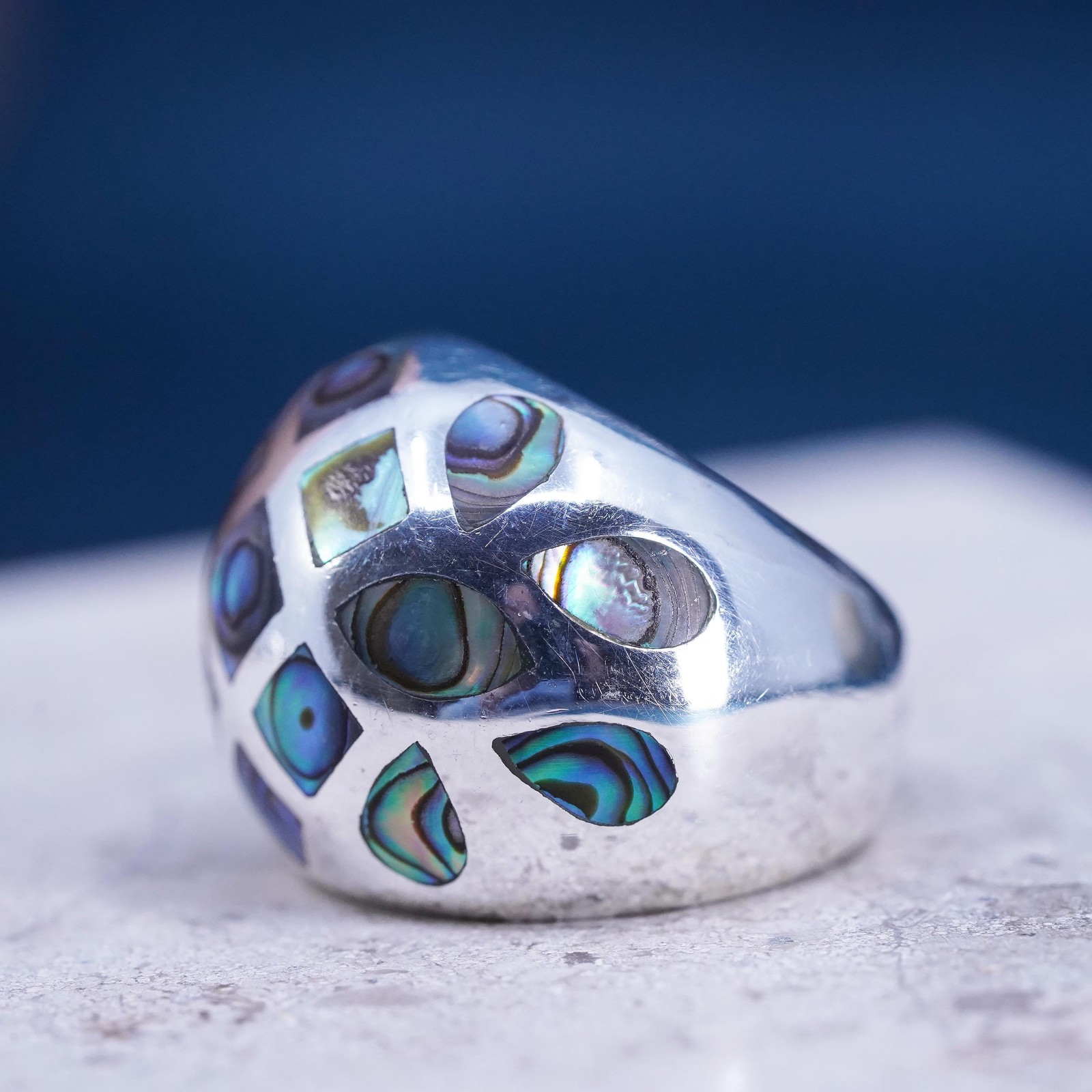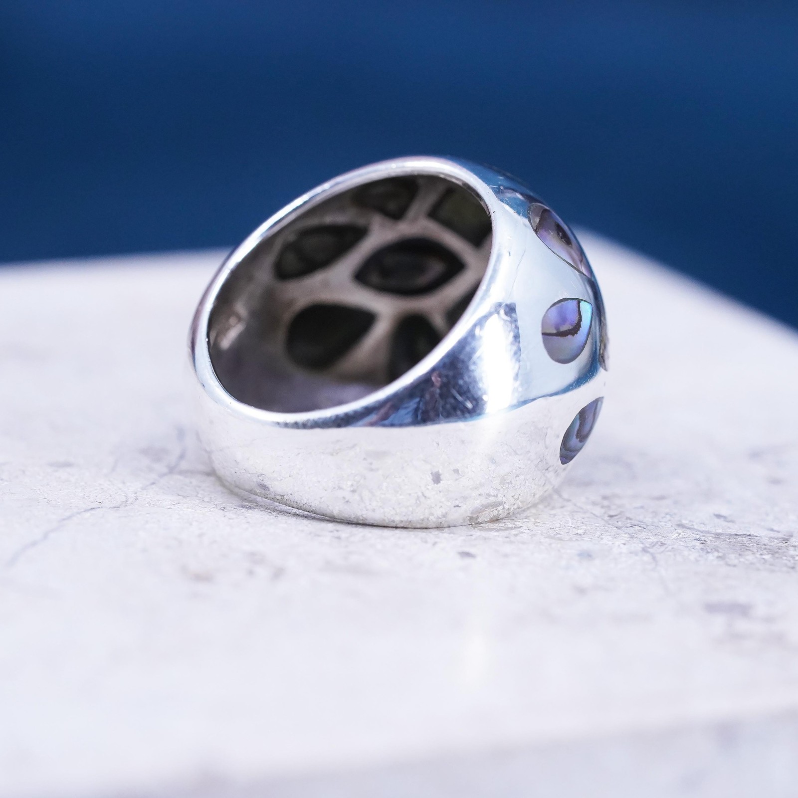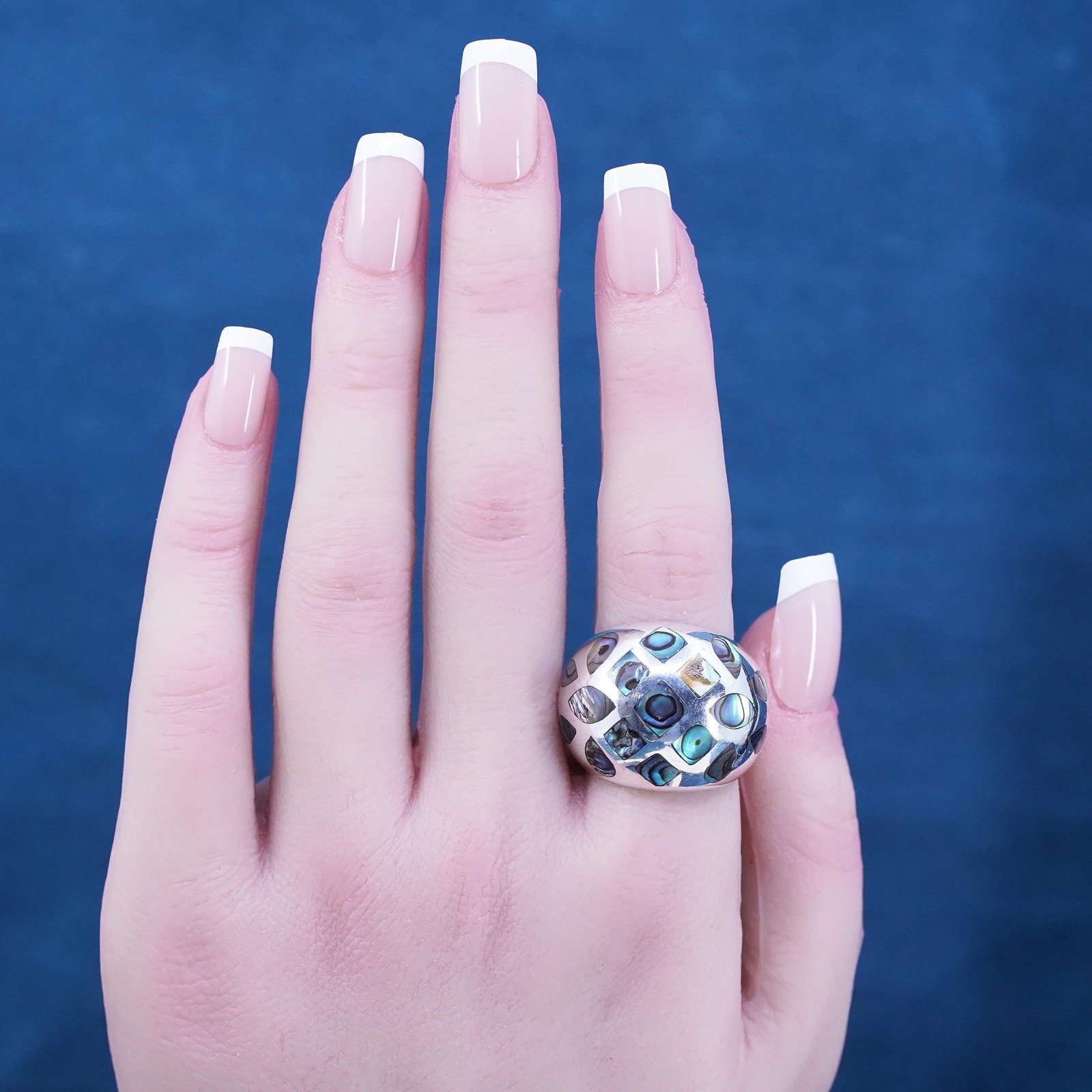 Size 7.5, vintage sterling 925 silver handmade statement ring with abalone