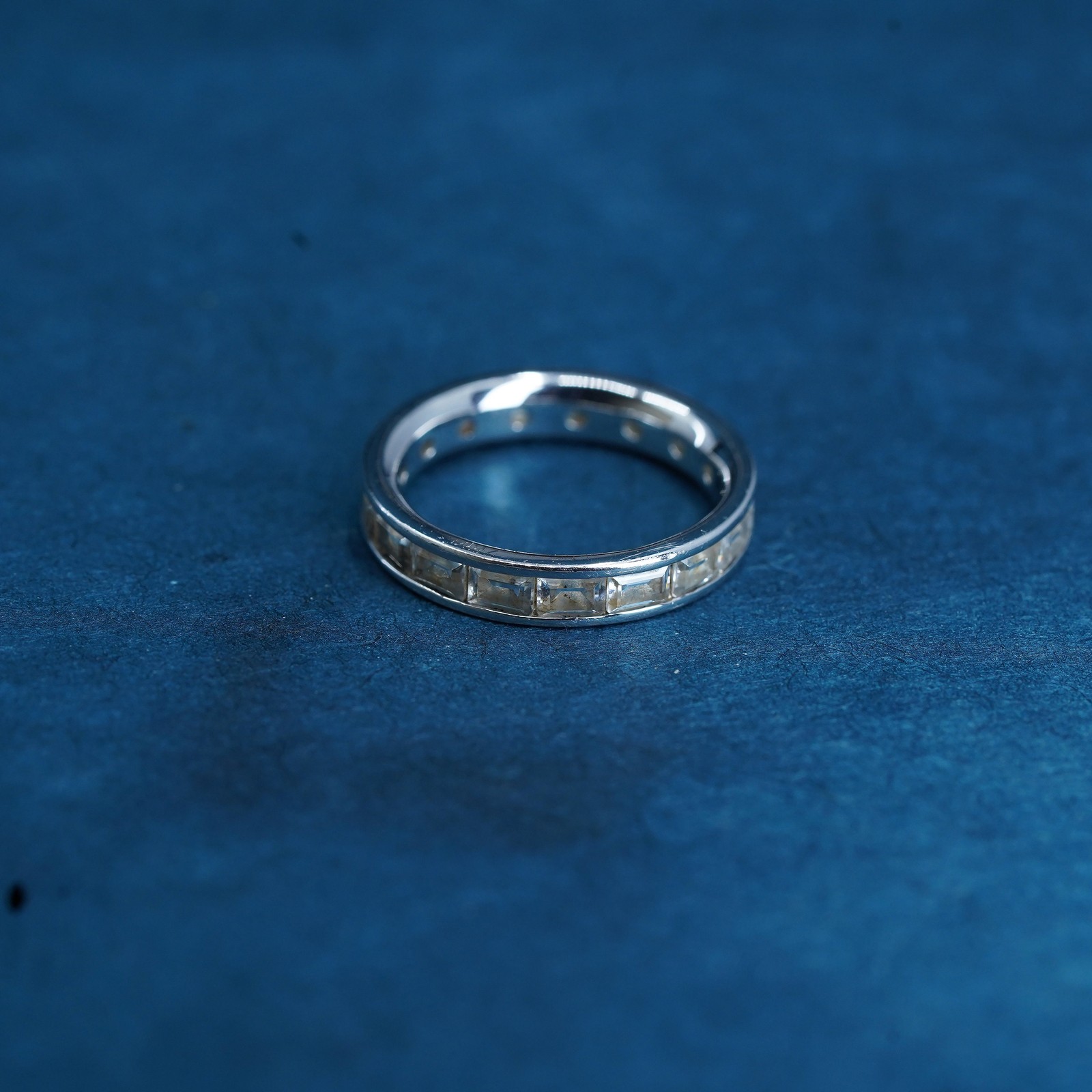 Size 6, Sterling 925 silver handmade ring, 925 stackable wedding band Cz