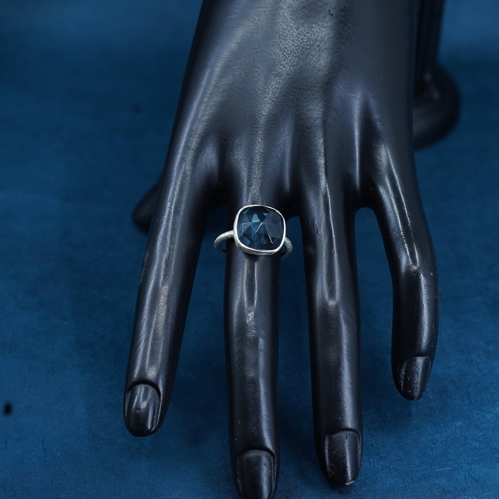 Size 6.25, vintage Sterling silver handmade matte 925 ring with blue crystal