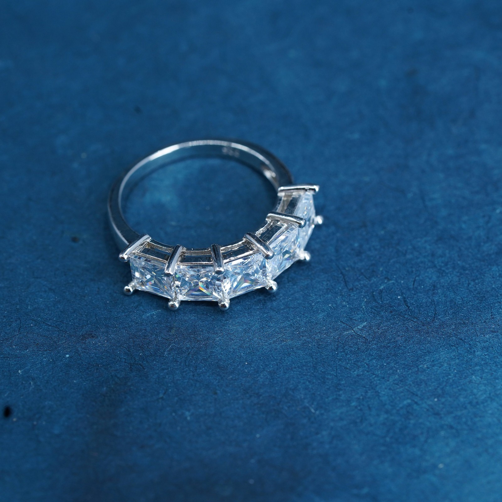как выглядит Size 7, vintage Sterling silver engagement ring, 925 band with clear cz inlay фото
