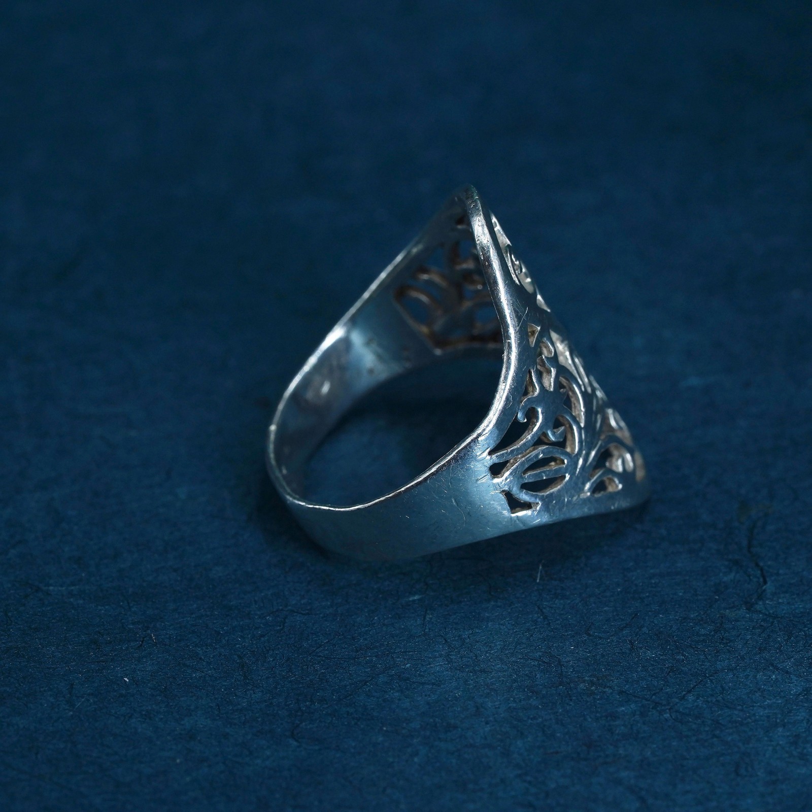как выглядит Size 8, vintage Sterling silver handmade ring, 925 filigree band фото
