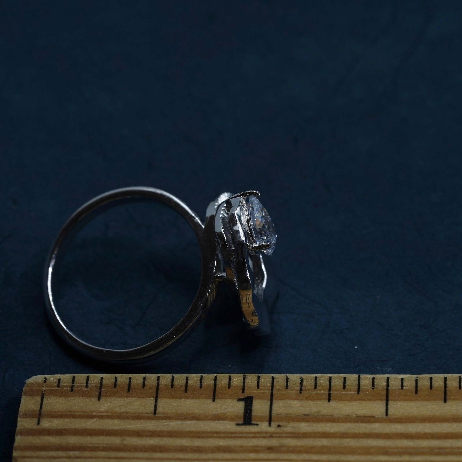 как выглядит Size 8, vintage Sterling 925 silver engagement ring with cz фото