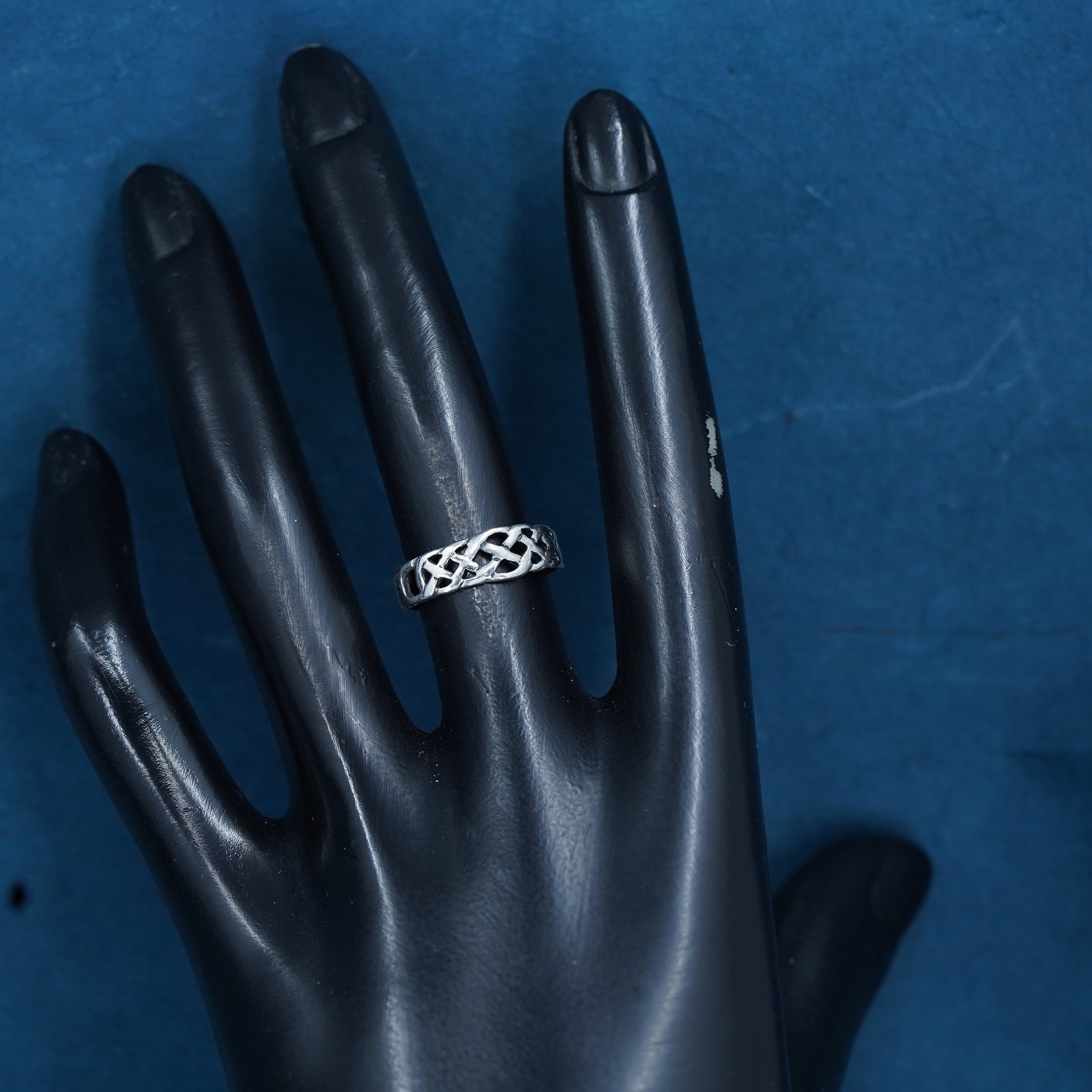 как выглядит Size 5.75, vtg sterling silver handmade ring, 925 filigree braided woven band фото