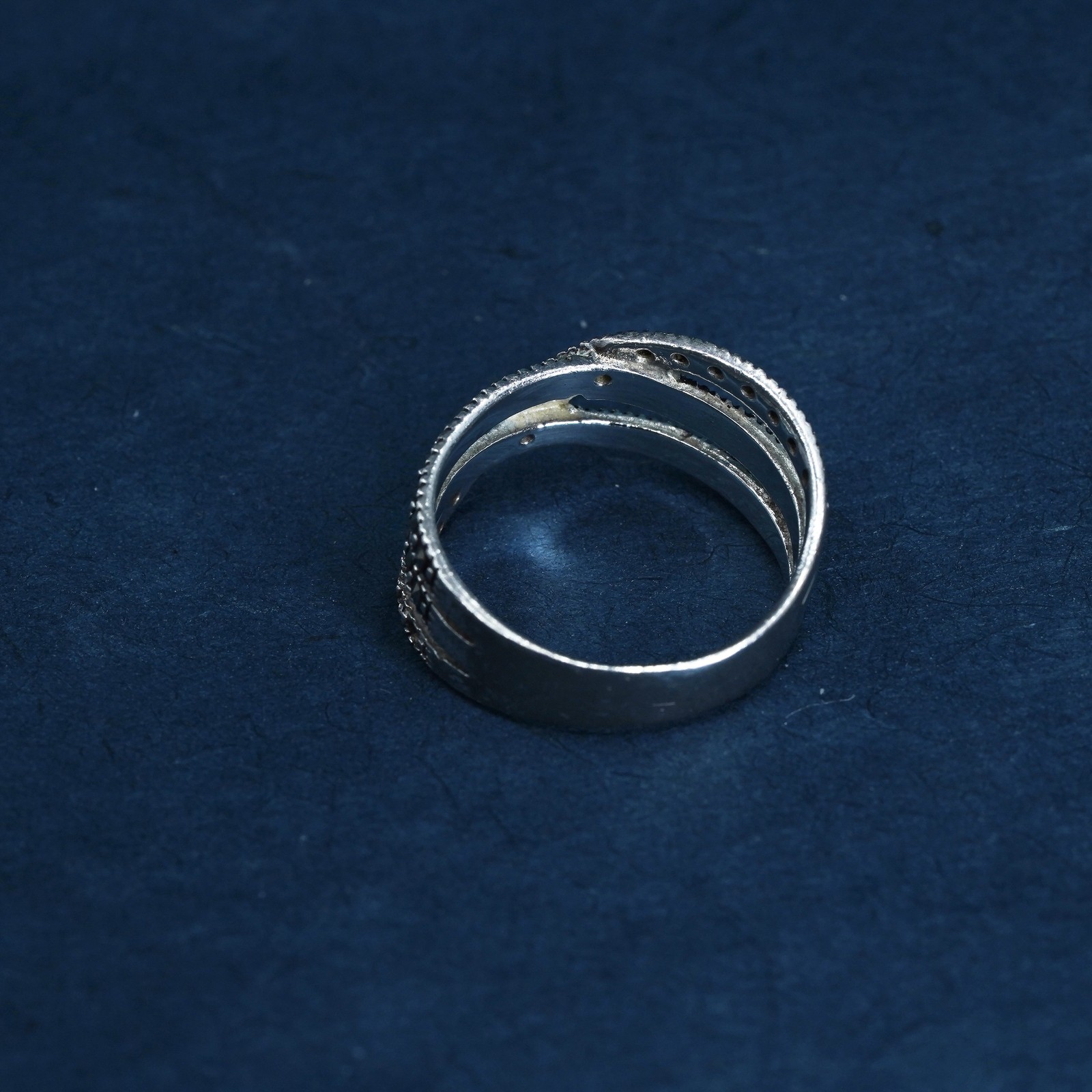 Size 6.5, vintage Sterling silver handmade ring, 925 band with marcasite detail