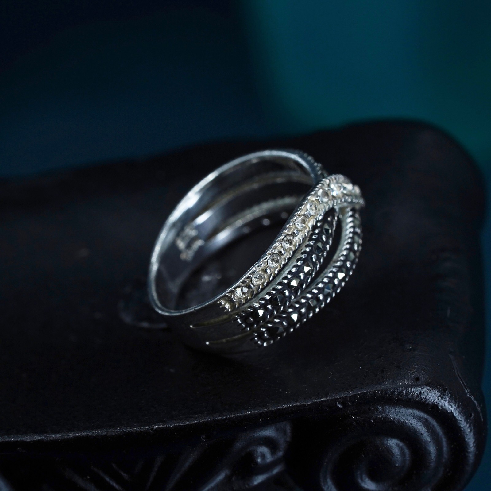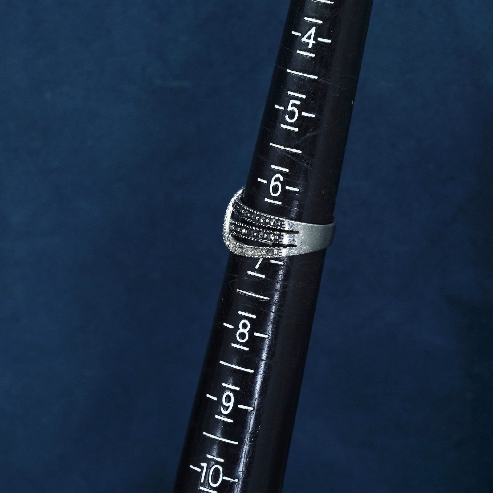 как выглядит Size 6.5, vintage Sterling silver handmade ring, 925 band with marcasite detail фото
