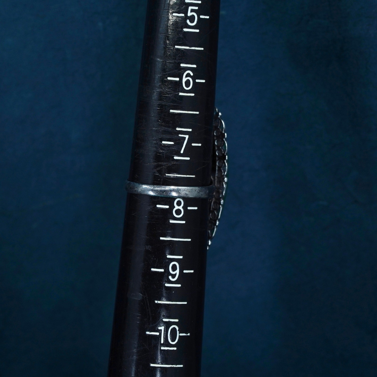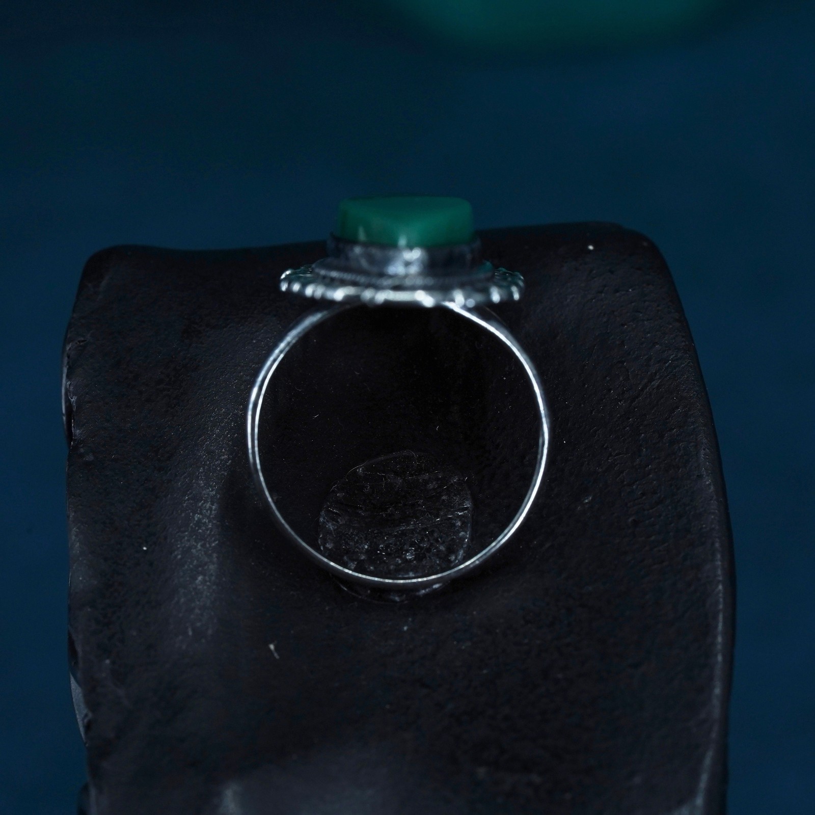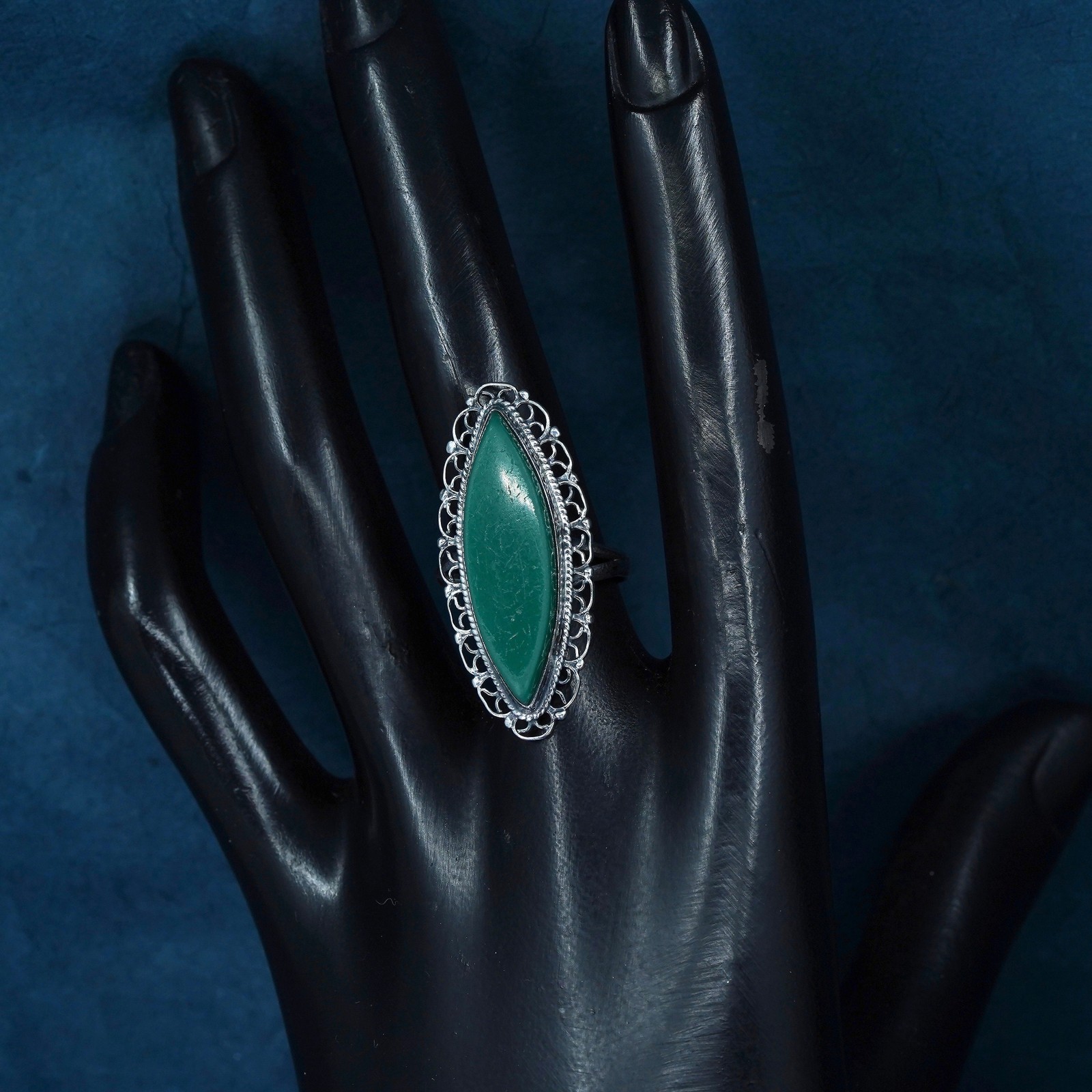 Size 7.75, vintage Mexican sterling 925 silver handmade ring with jade