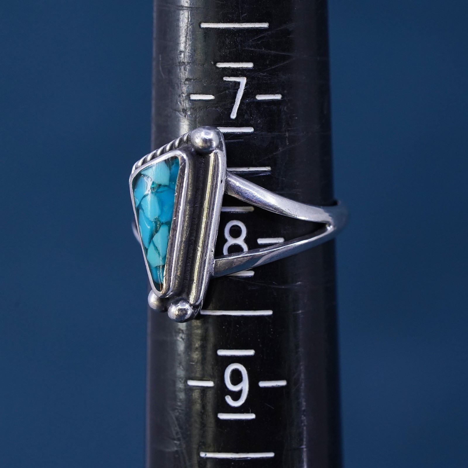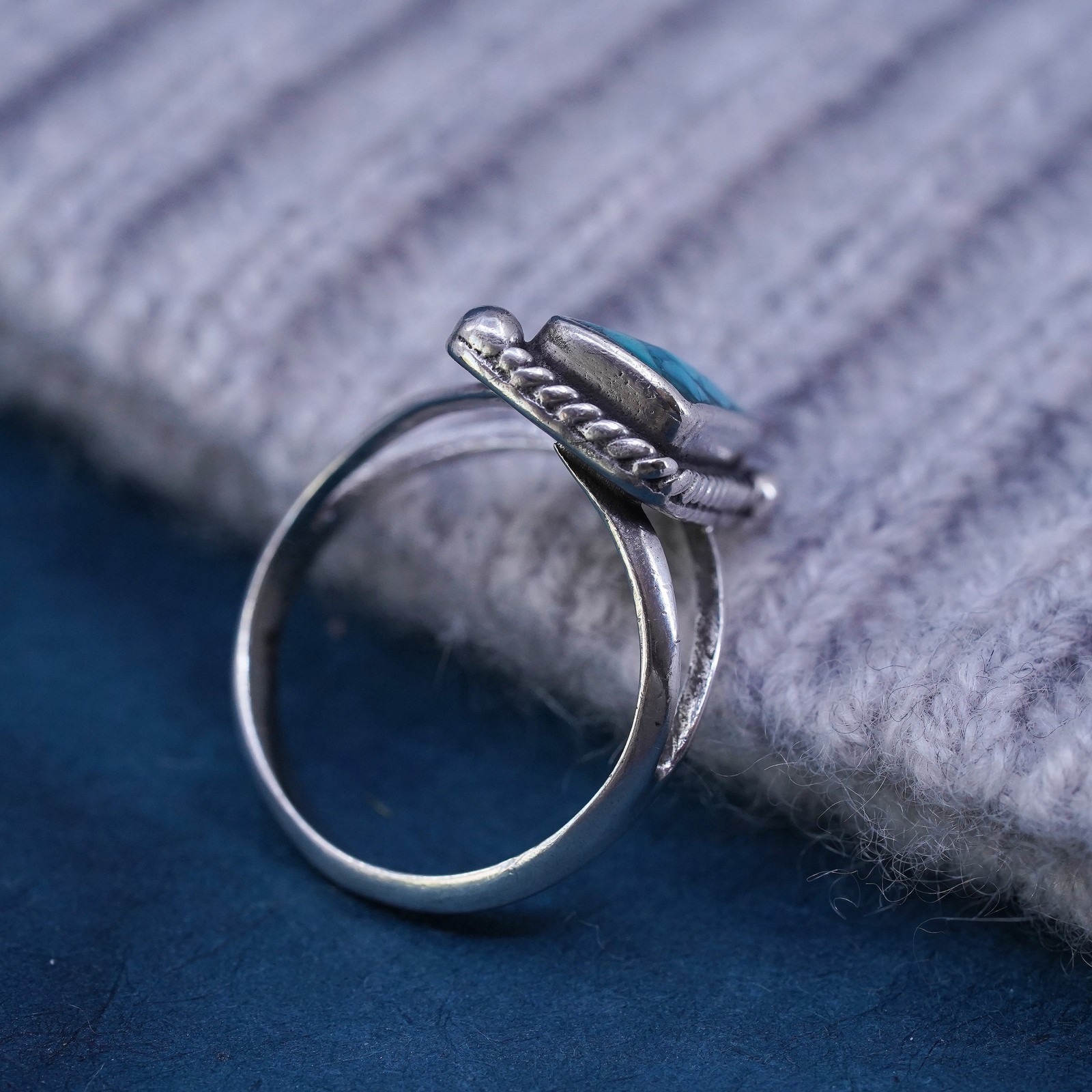 как выглядит Size 7.5 Native American, southwestern Sterling silver handmade ring turquoise фото