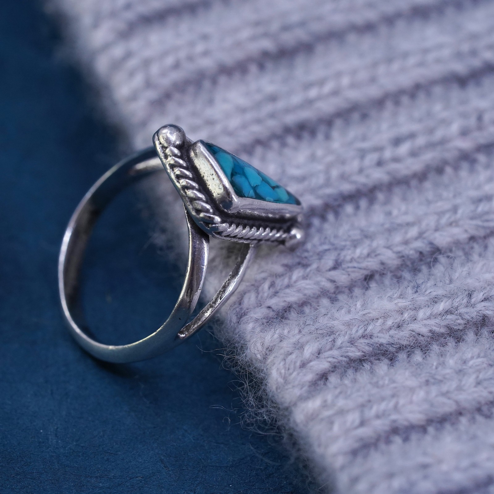 Size 7.5 Native American, southwestern Sterling silver handmade ring turquoise